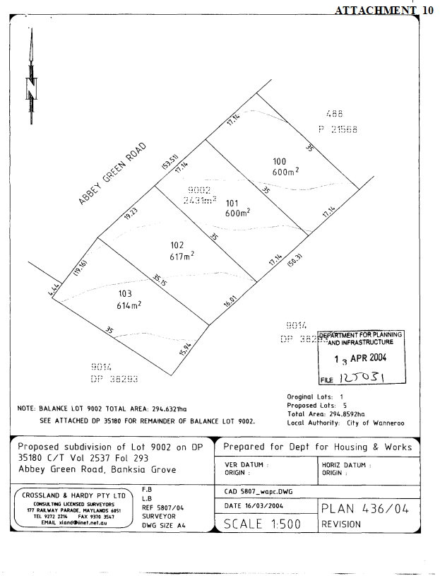 Dundebar Road, Wanneroo on Tuesday 18 May, 2004 commencing at 7.00pm.