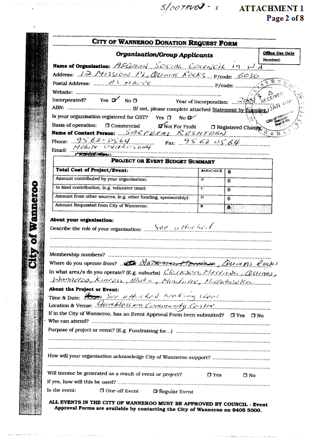 The City of Joondalup was approached for a similar donation |
