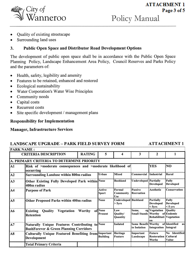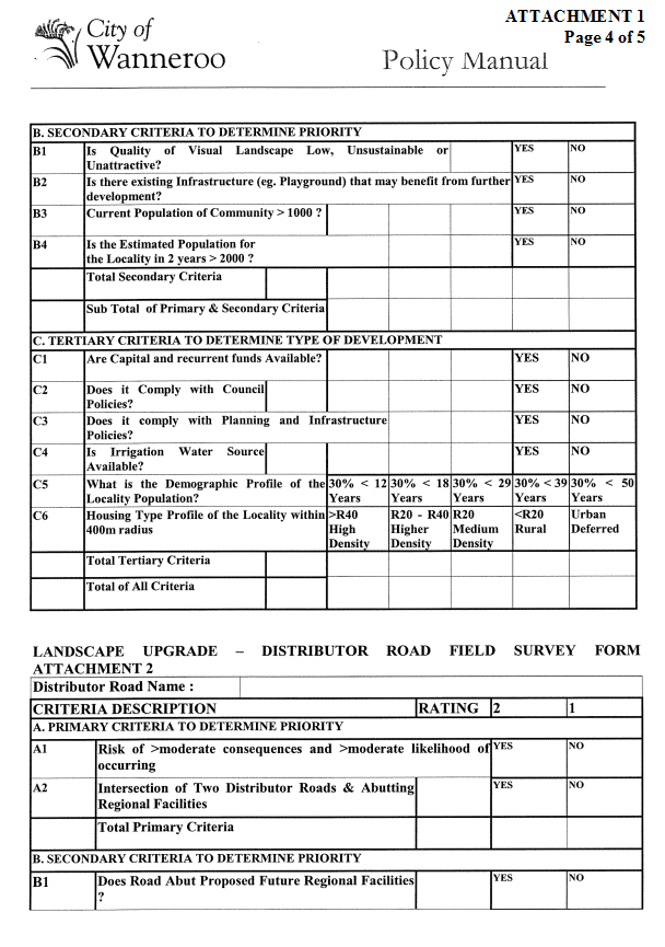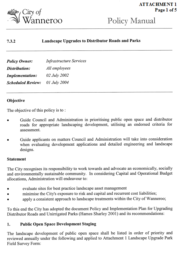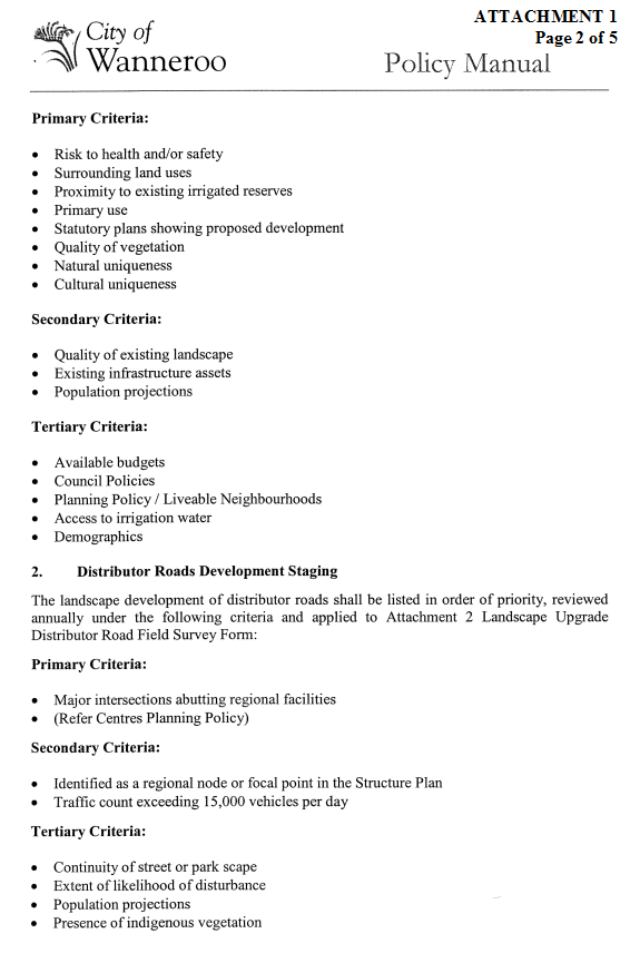 TS08-03/05 Policy for Landscape Upgrades to Distributor Roads and Parks