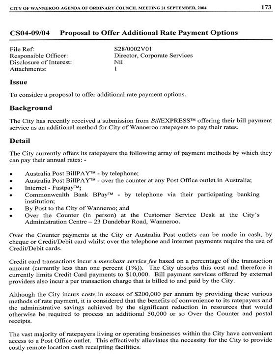 CS03-03/05 Proposal to Offer Additional Payment Options