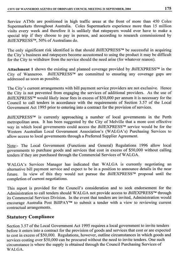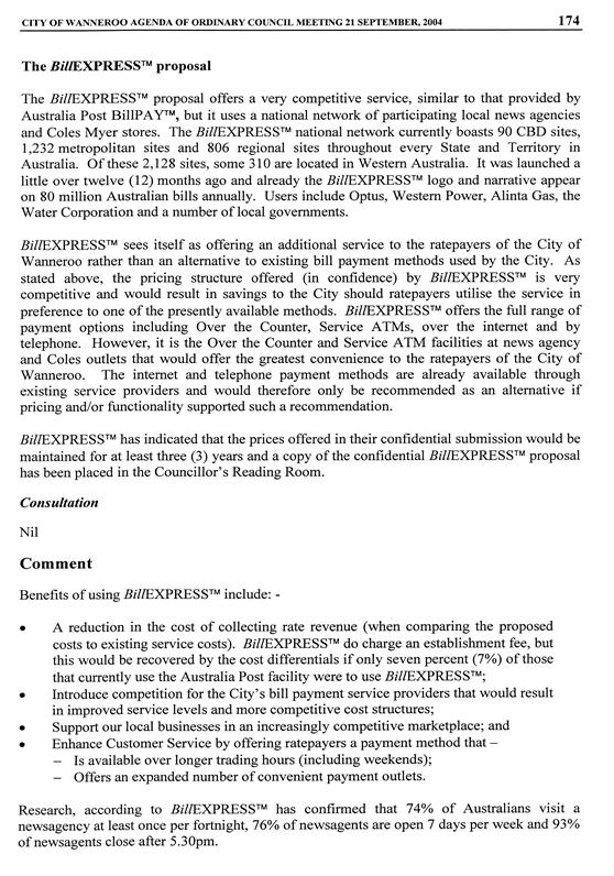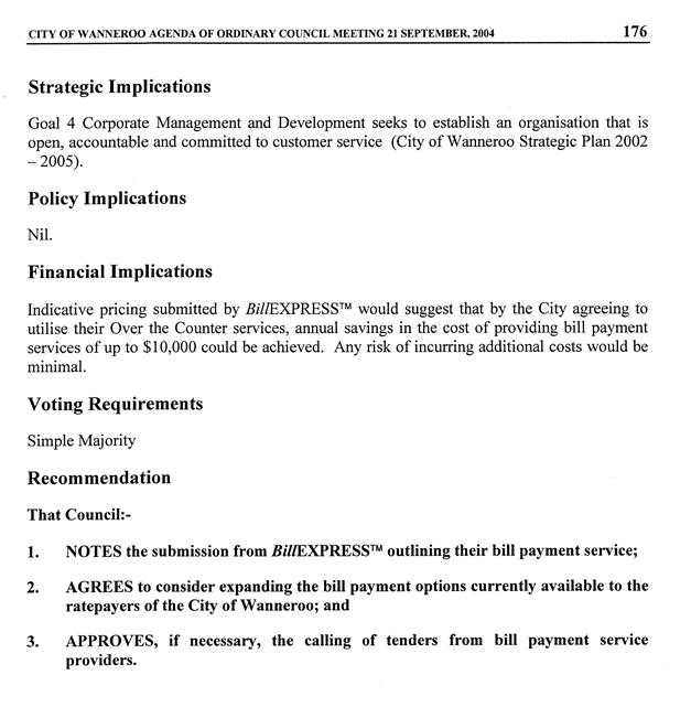 This issue is being dealt with at Council’s meeting of 15 March 2005.