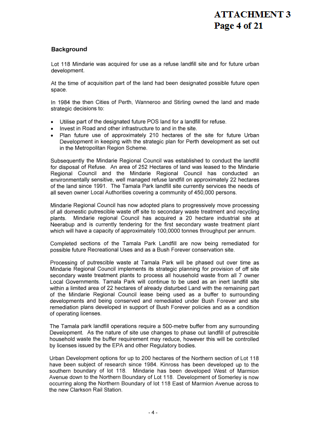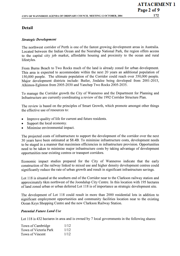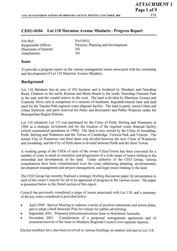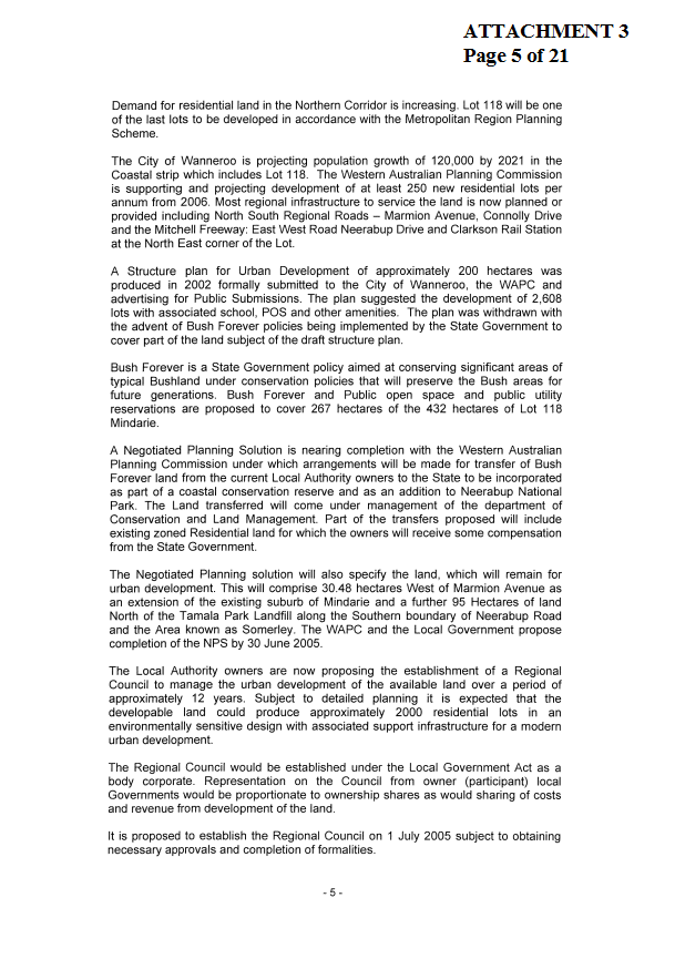 CE01-03/05 Lot 118 Mindarie Land Issues and Proposed Regional (Development) Council