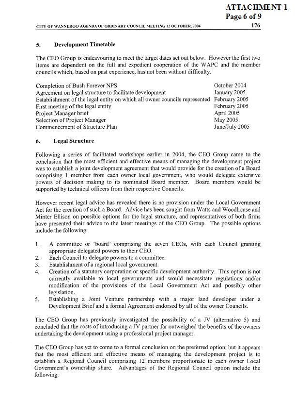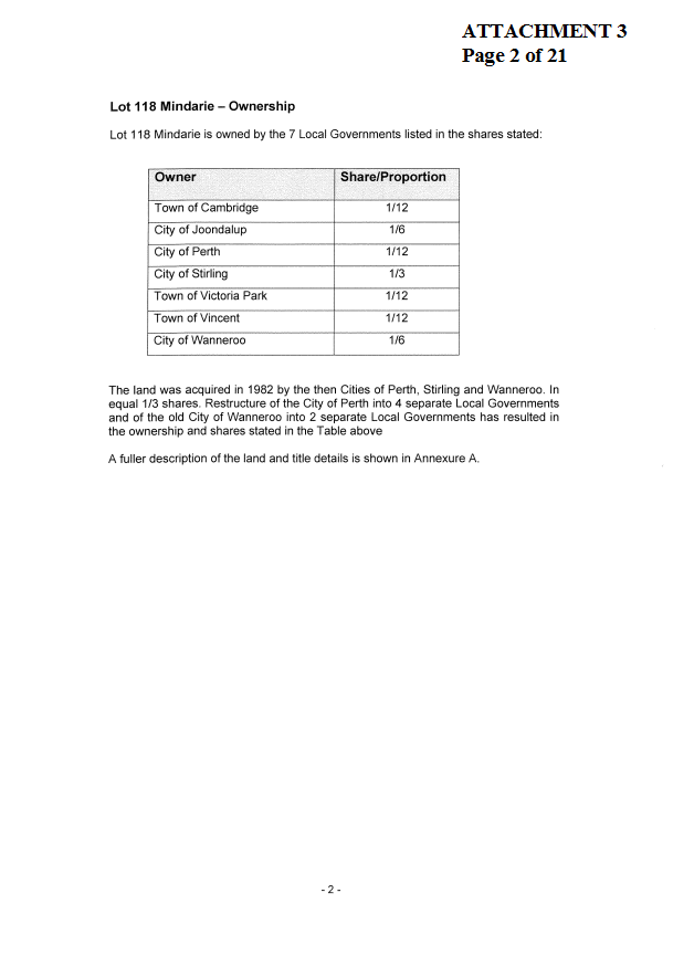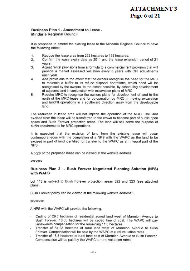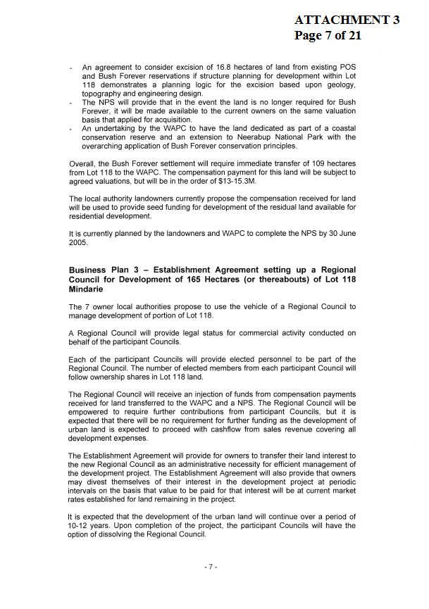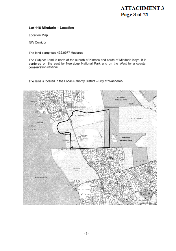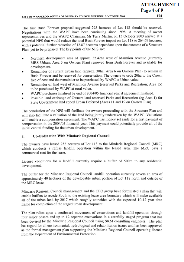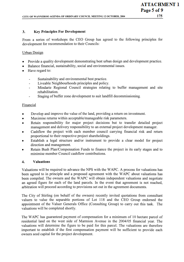 5. NOTES the valuation components of Lot 118 Mindarie for the purpose of negotiations with the WAPC for compensation payments for land to be transferred under the NPS.