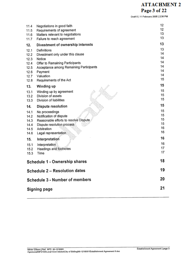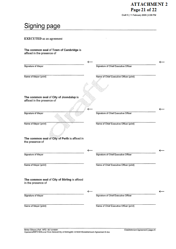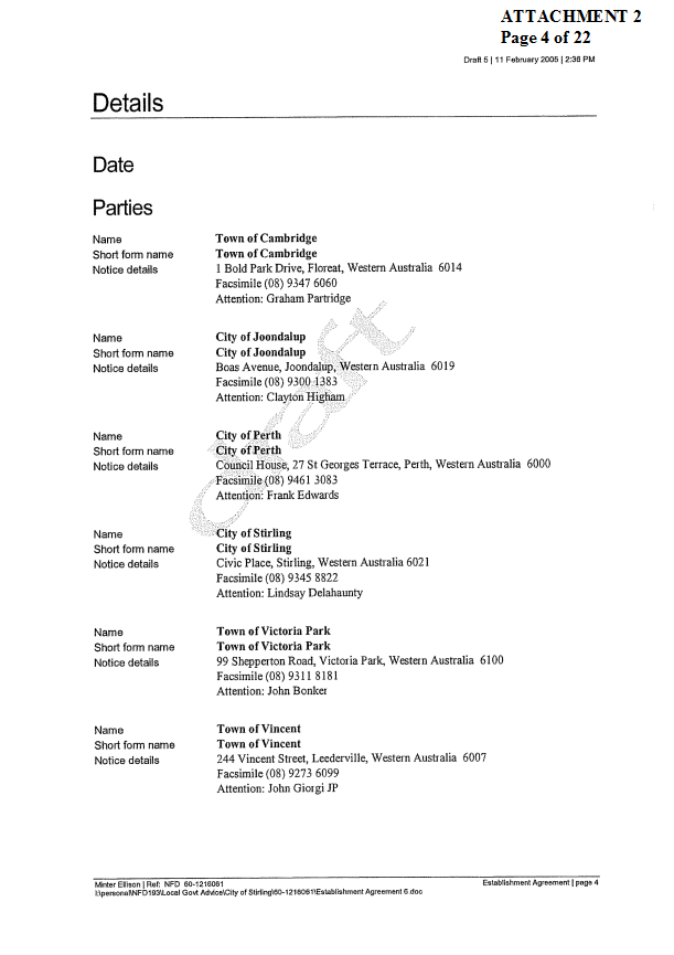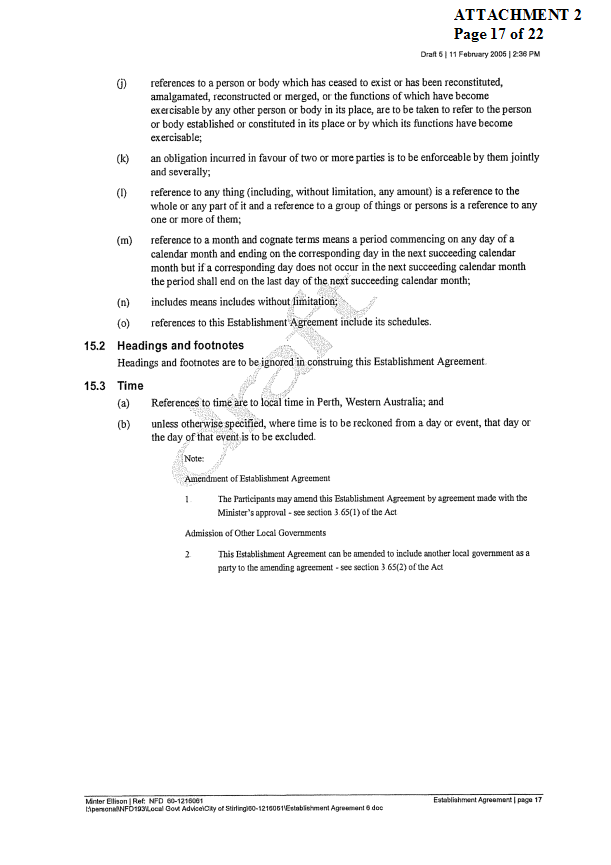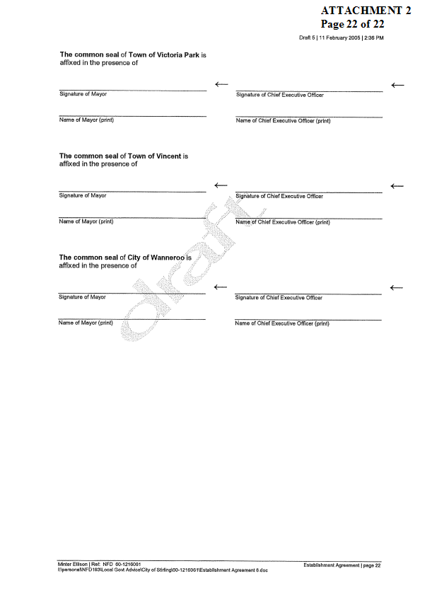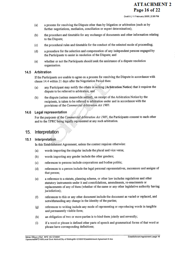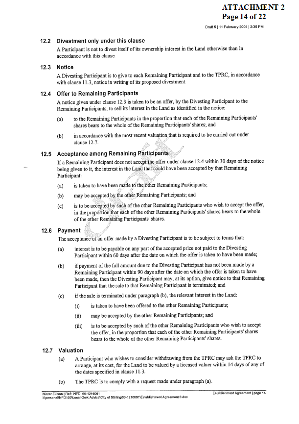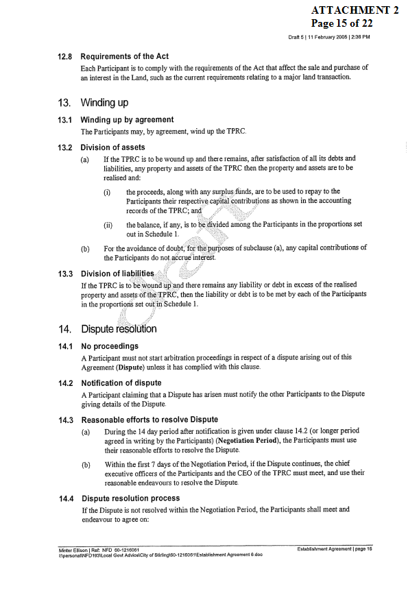 2. APPROVES IN PRINCIPLE the draft Establishment Agreement for the Tamala Park Regional Council (TPRC) subject to a suitable clause being included which requires the TPRC to pay on an annual basis a rate equivalent payment to the City of Wanneroo.