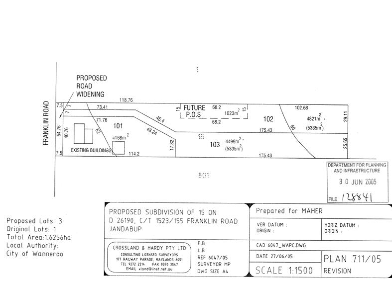 PD03-08/05 Proposed Rural Subdivision - Lot 15 (102) Franklin Road, Jandabup