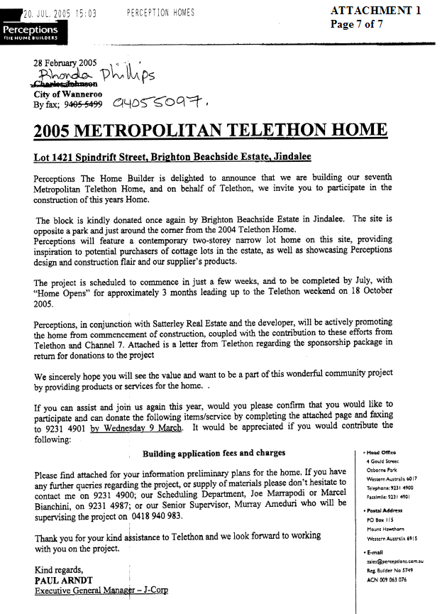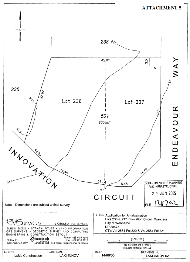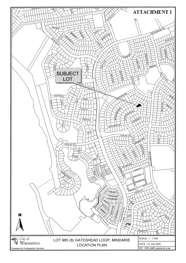 Dundebar Road, Wanneroo on Tuesday 09 August, 2005 commencing at 7.00pm.