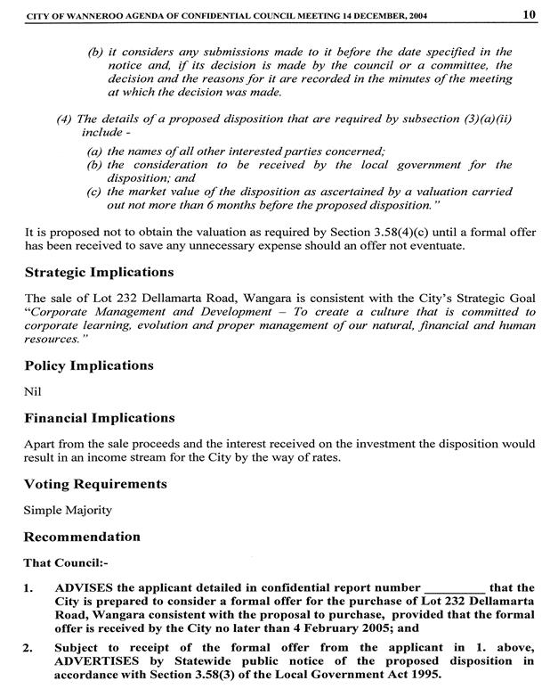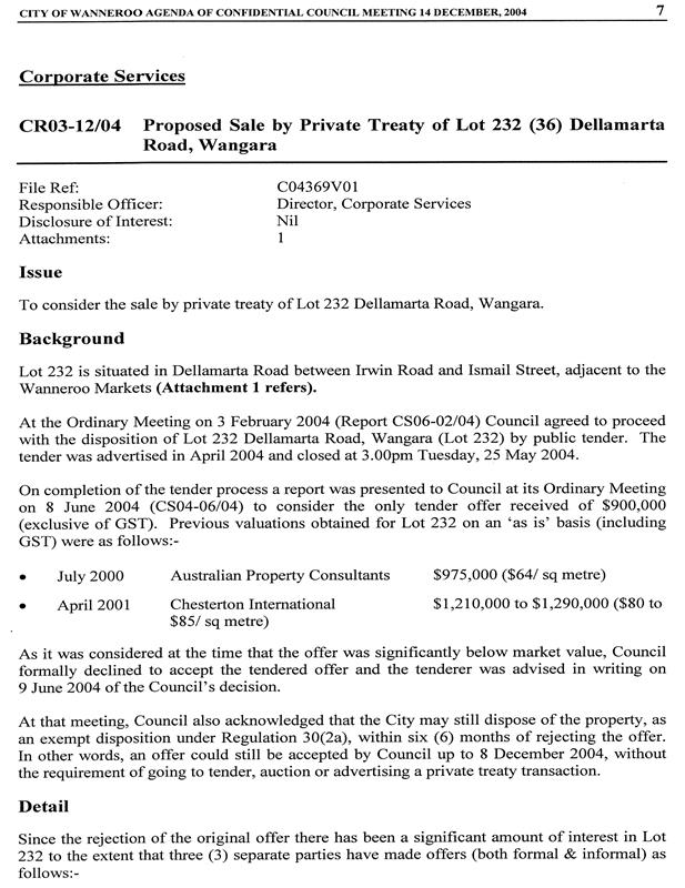 CS02-08/05 Proposed Sale of Lot 232 (36) Dellamarta Road, Wangara