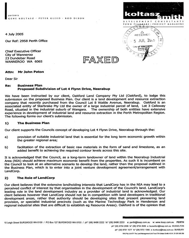 CS04-08/05 Proposed Subdivision of Lot 4 Flynn Drive, Neerabup