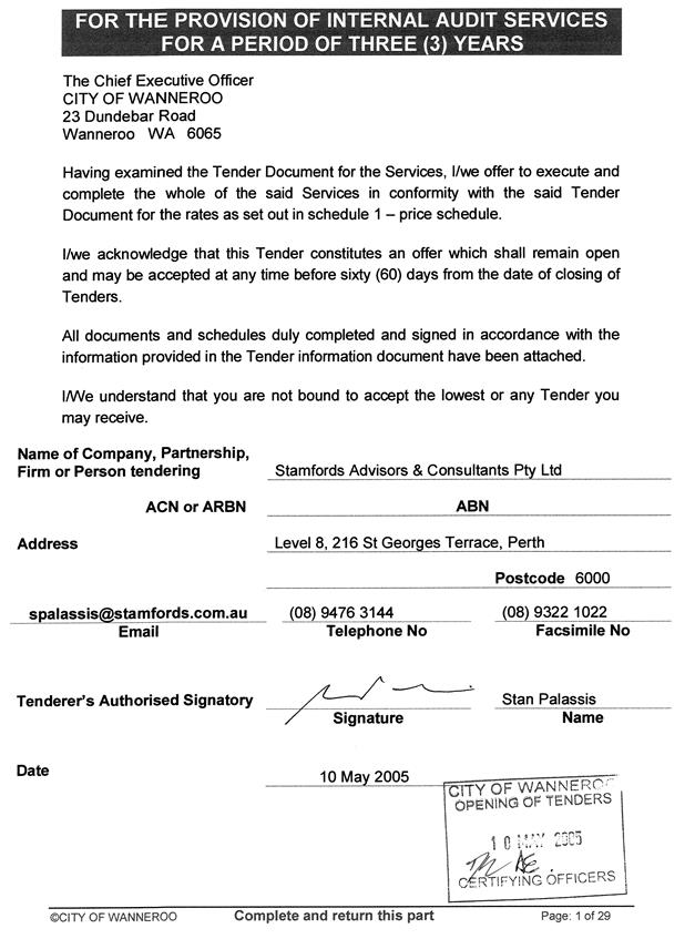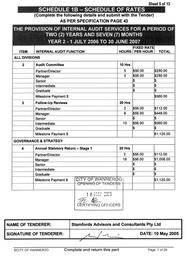 GS02-08/05 Tender 05511 - Internal Audit Services - 1 July 2005 to 30 June 2008