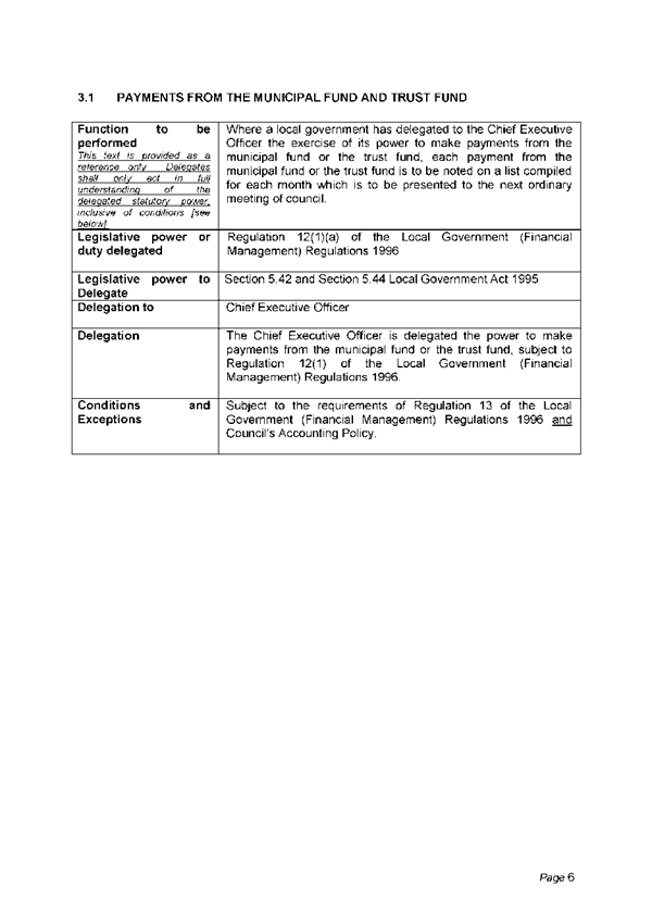 a) The authority to DETERMINE the following tenders up to a maximum of $1,000,000 per tender in accordance with the Local Government (Functions and General) Regulations 1996 (in addition to the current delegated authority to the Chief Executive Officer to award tenders to a maximum of $250,000):- i) Tender 01142 – Development of Jimbub Swamp Park, Tapping; ii) Tender 01143 – Provision of Legal Services (Panel Contract) for a period of five (5) years; and iii) Tender 01144 – Provision of Legal Services by a Barrister (Panel Contract) for a period of five (5) years; and b) The authority to APPROVE a lease arrangement between the City of Wanneroo and the Department of Education for the Koondoola Kindergarten facility. 2. NOTES that the delegation in 1. a) iii) may be on delegated to the Director Corporate Strategy & Performance due to a potential impartiality interest with the Chief Executive Officer. 3. AUTHORISES the Mayor and the Chief Executive Officer to affix the Common Seal of the City of Wanneroo to and execute the Lease between the City and the Department of Education. Carried BY ABSOLUTE MAJORITY 13/0 |