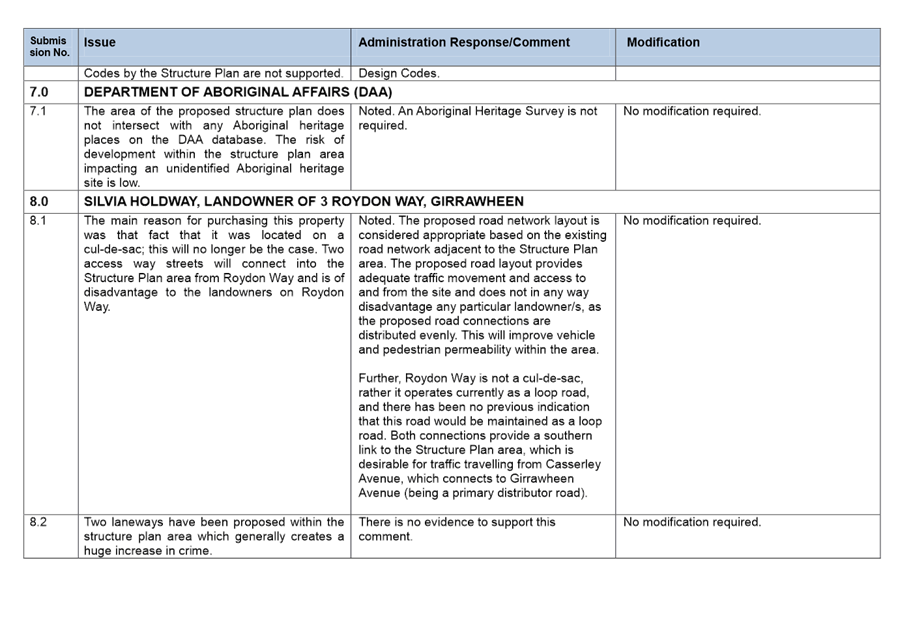 The draft LSP was advertised for public comment for a period of 42 days by means of an on-site sign, an advertisement in the Wanneroo Times newspaper, the City’s website and letters written to adjoining landowners. The submission period closed on 11 March 2014, with eight (8) submissions being received. A summary of submissions received and Administration responses are shown in Attachment 3.