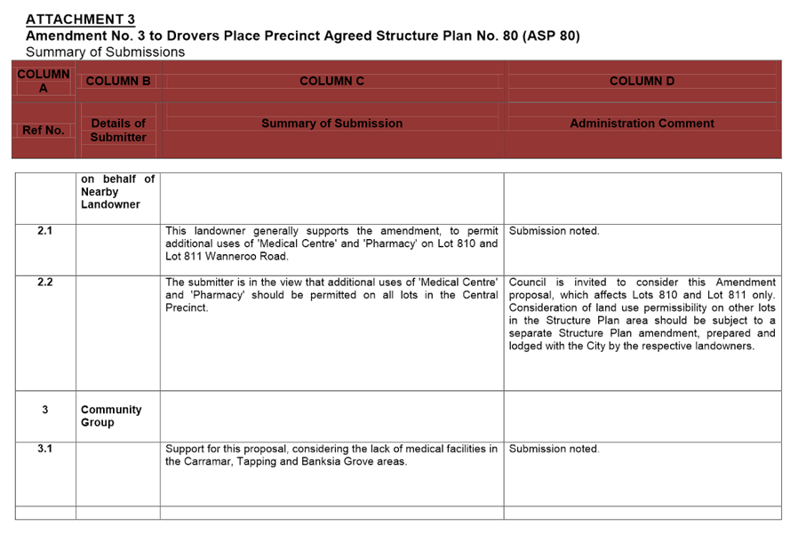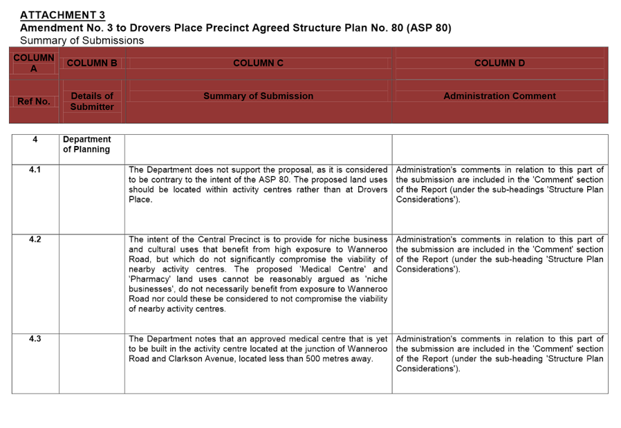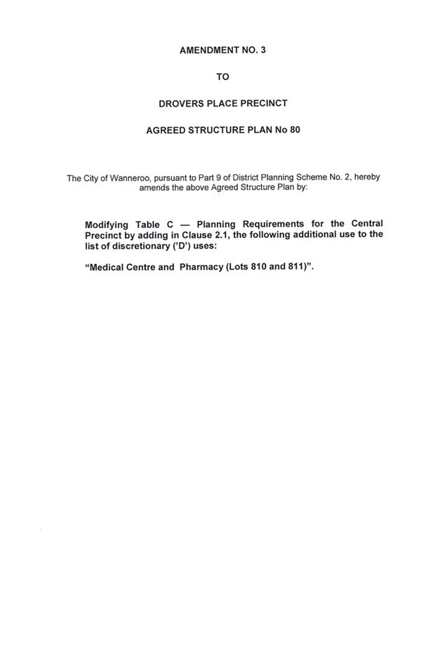 3.3 Determination of Amendment No. 3 to the Drovers Place Precinct Agreed Structure Plan No.80