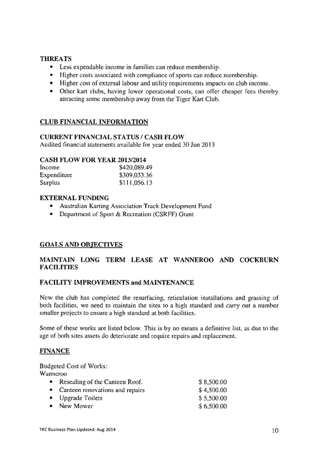Sponsorship income (projected goal $50,000) Grant funding (approx $10,000) In kind contribution from ECU reduces operating costs by $13,500 per annum Application to City of Joondalup |