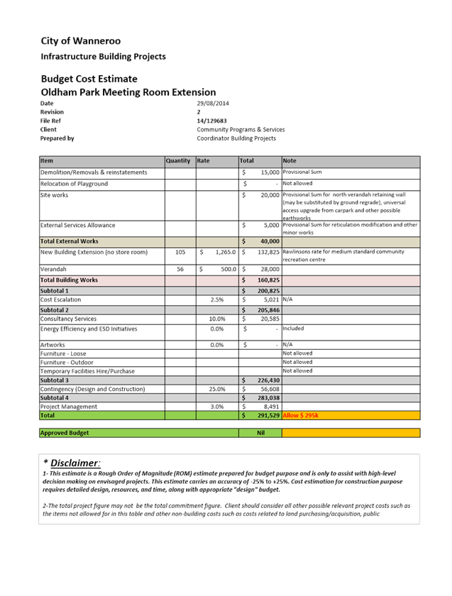 3.16 Oldham Reserve - Building Extension - Financial and Resource Capacity