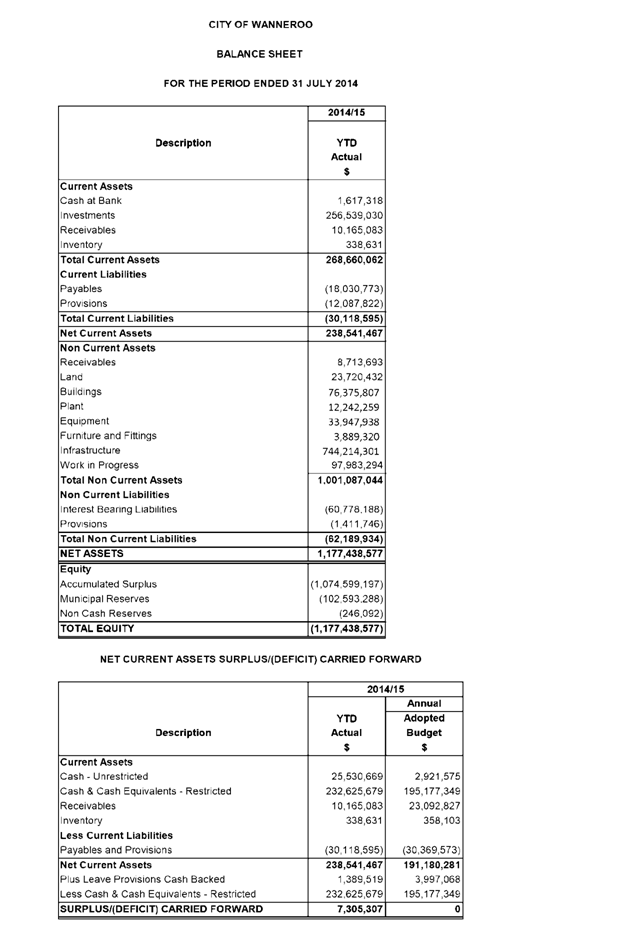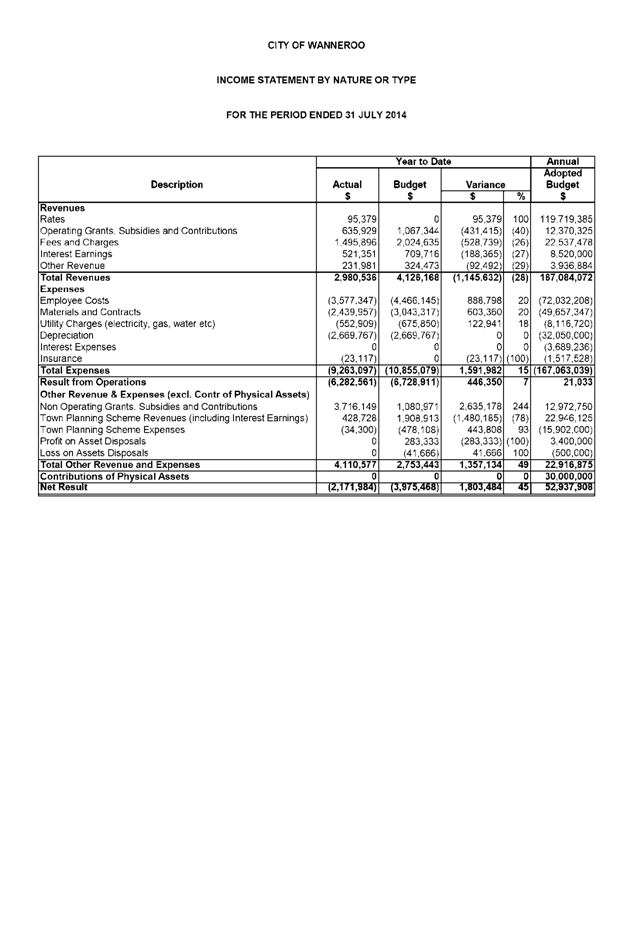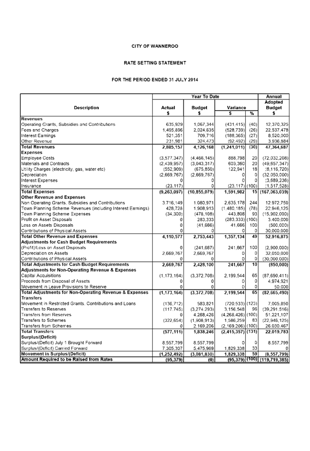 3.19 Financial Activity Statement for the Period Ended 31 July 2014