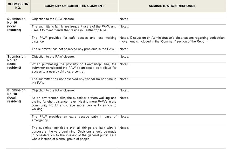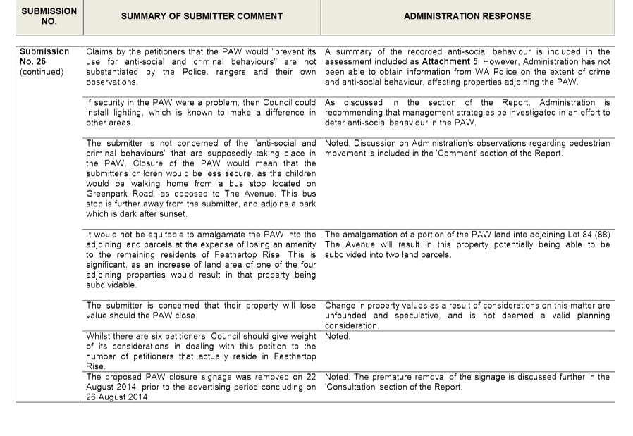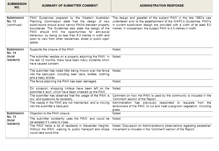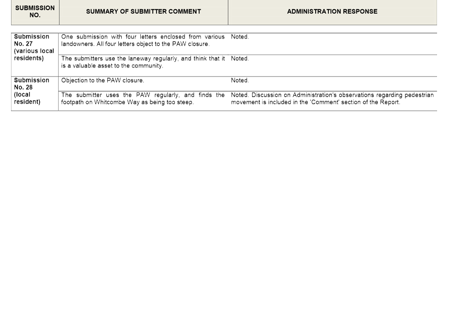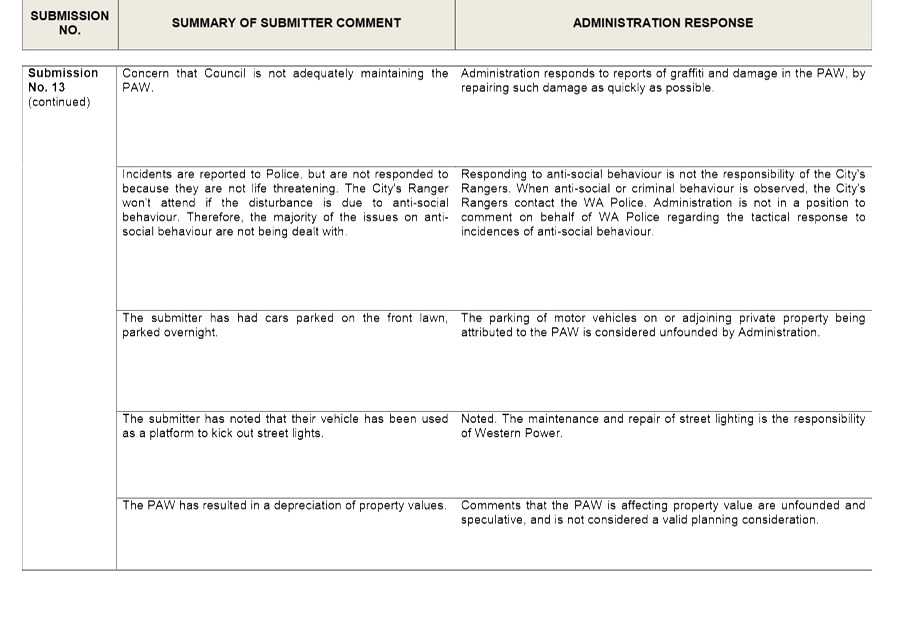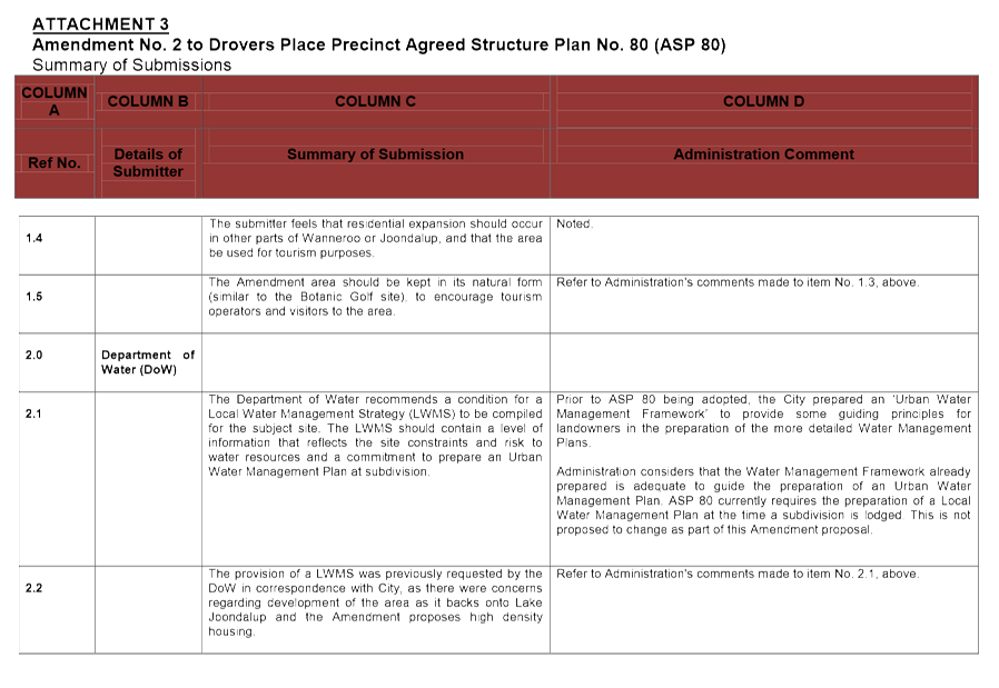 Given that the landowners within and surrounding the existing policy area may be affected by possible rescission of the Policy and the introduction of a Detailed Area Plan, Administration advertised the Detailed Area Plan for a period of 28 days as prescribed under the City of Wanneroo's 'Local Planning Policy 4.2: Structure Planning'. Letters were sent to landowners within the proposed Detailed Area Plan area, as well as landowners of land adjacent to the proposed Detailed Area Plan area. The advertising process advised these landowners that Administration are proposing to transfer the Policy requirements to a Detailed Area Plan, with the intention of rescinding the Policy. Submissions were invited from 4 November 2014 to 1 December 2014. In that time, no submissions were received.