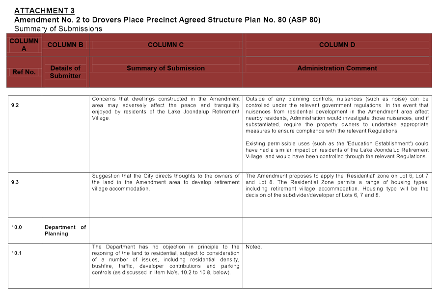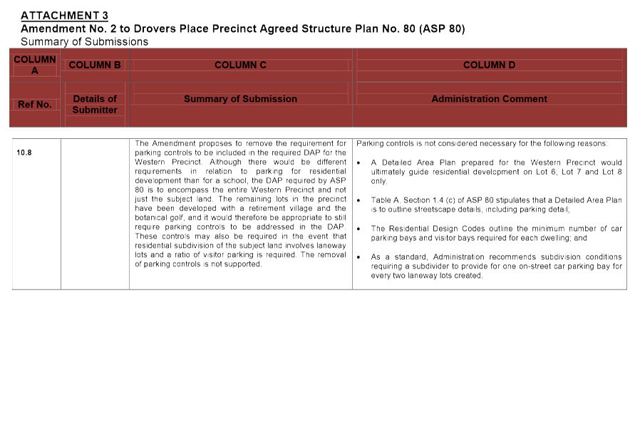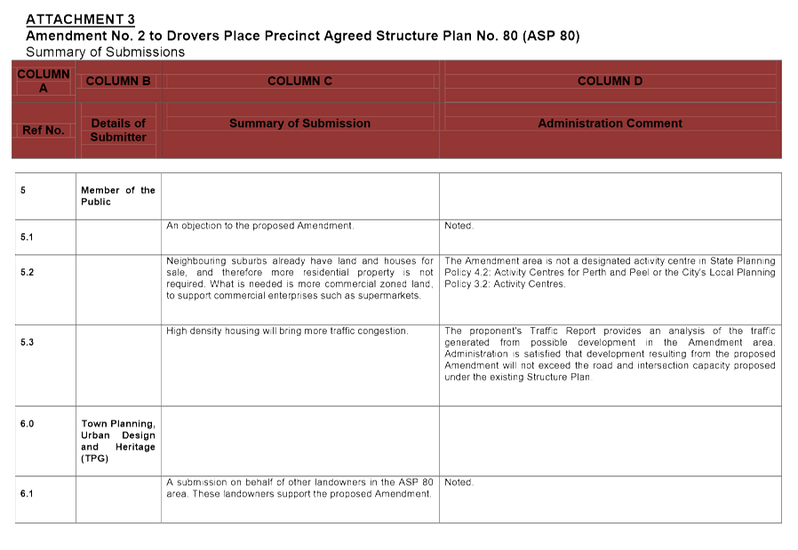 3.8 Reconsideration of Amendment No. 3 to the Drovers Place Precinct Agreed Structure Plan No. 80