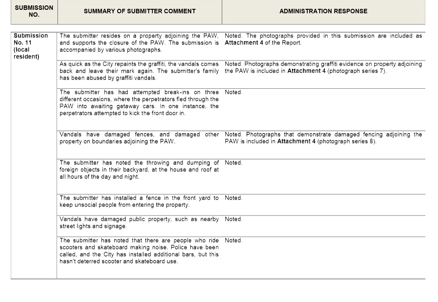 11. That the City of Wanneroo make provision within their 2015/16 budget to provide more infrastructure in Fred Stubbs Park, e.g. Lighting, shade, trees, table seating and BBQ’s.