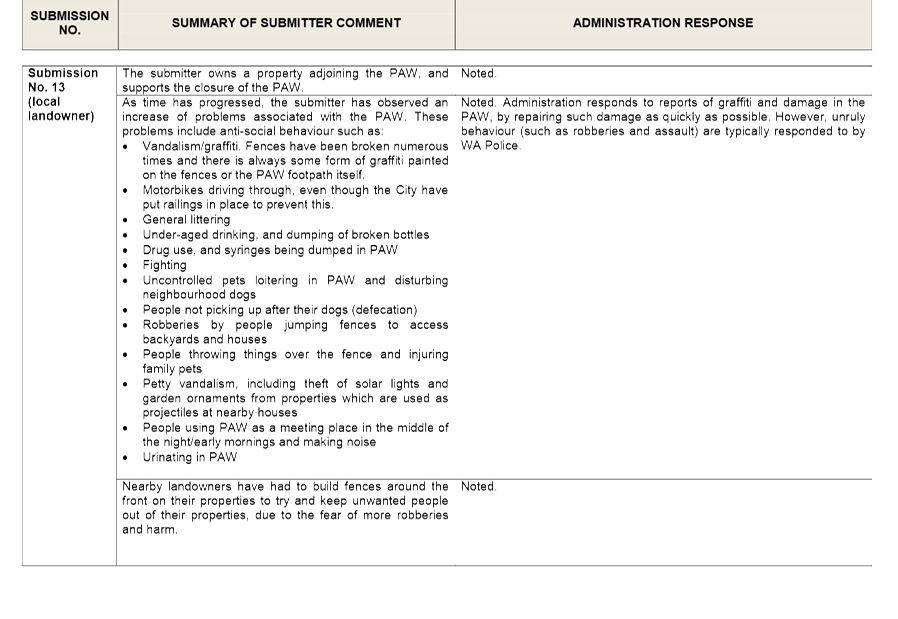 The Draft Swan Region Strategy for Natural Resource Management and the Strategy's Draft Implementation Plan, once endorsed, may provide an opportunity for future funding and collaboration between the City and the Perth Region NRM. Additionally, Administration continually pursues relevant grant funding opportunities and collaborations when available and as resources permit. The City has good working relationships with surrounding schools via the 'Adopt a Bushland' program which has relevance to foreshore reserves and continually maintains these relationships via planting events, clean-up days and in kind support.