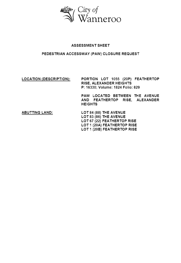 CITY OF WANNEROO Agenda OF Elected Members' Briefing Session 27 January, 2015 361