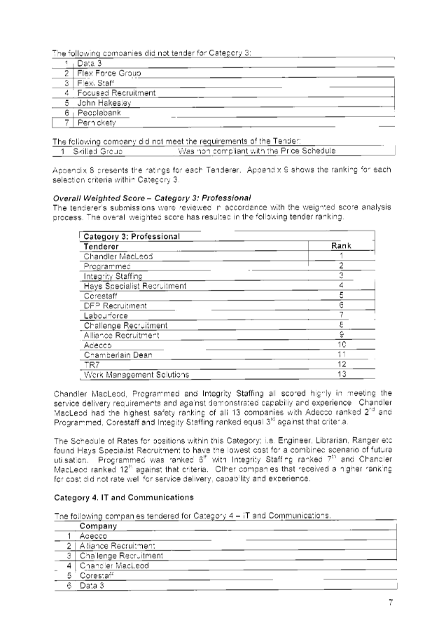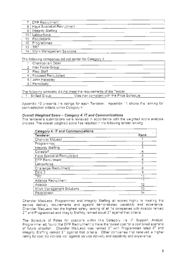 1. The awarding of Tender No. 01449 to Chandler Macleod Group Limited, Integrity Staffing Pty Ltd and Programmed Integrated Workforce Limited for the Provision of Temporary Personnel Services for a period of three (3) years commencing 2 February 2015 with two (2), twelve (12) month options to extend (at the discretion of the City) and on the basis of the schedule of rates provided in each tender submission.