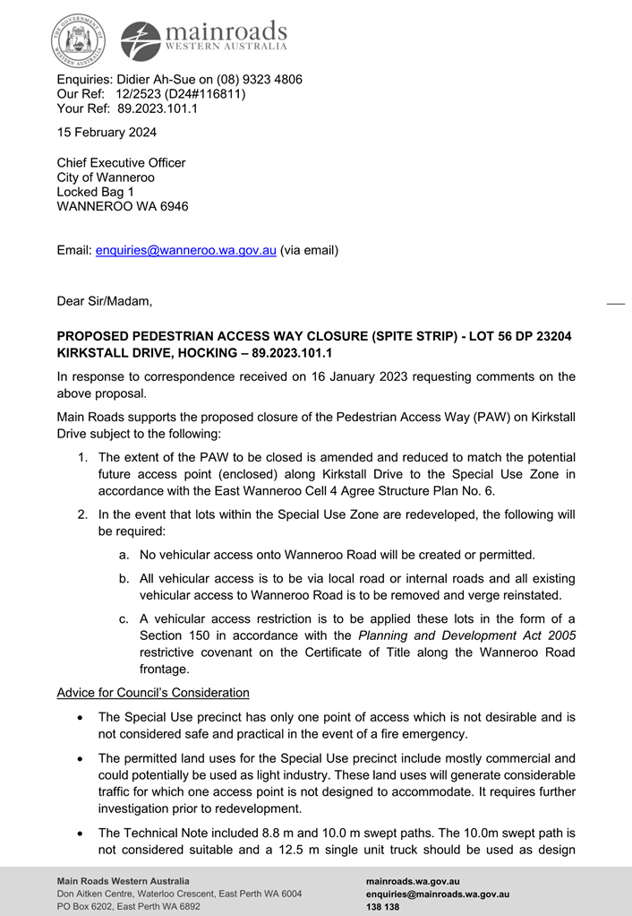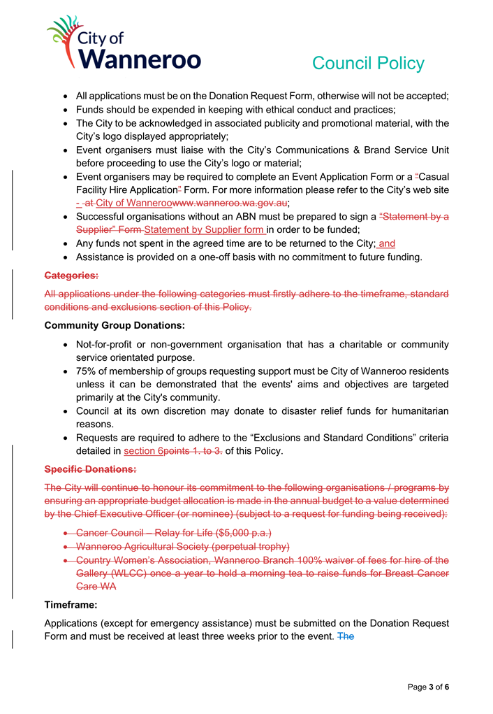 The City will make every endeavour to provide a response to any submissions at the meeting. All submissions will form part of the electronic meeting and will be recorded in the Minutes of the Council meeting.