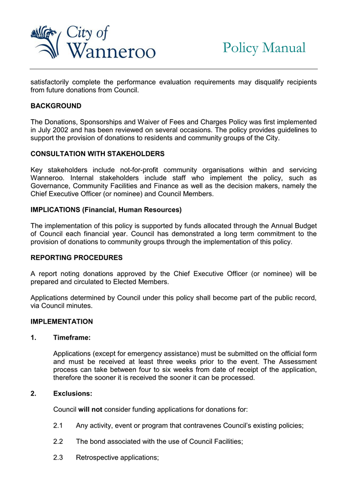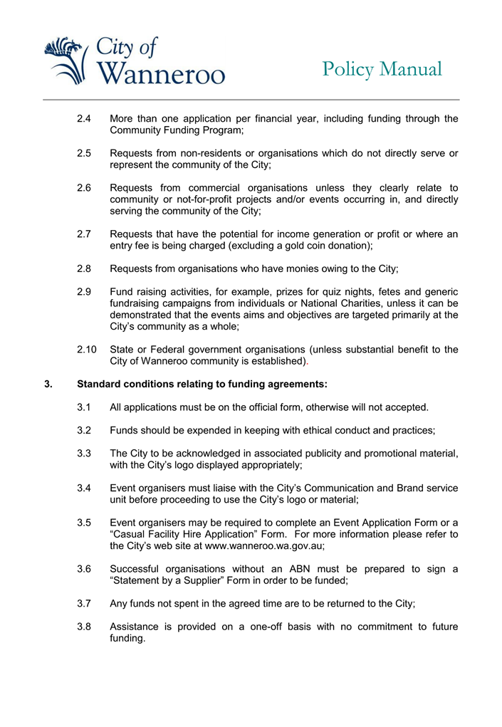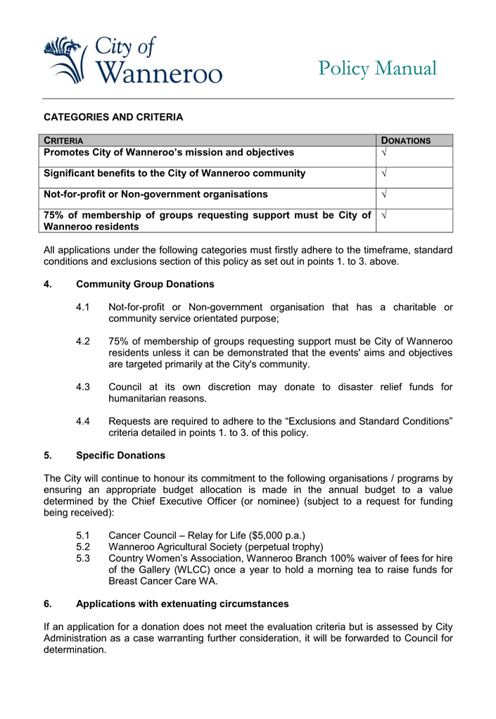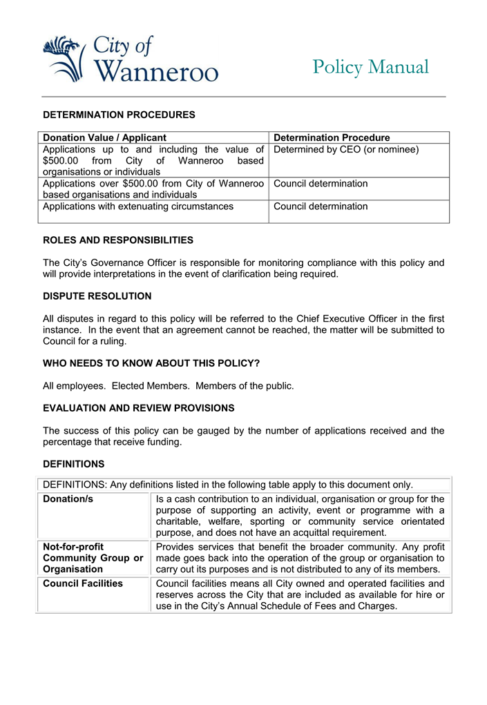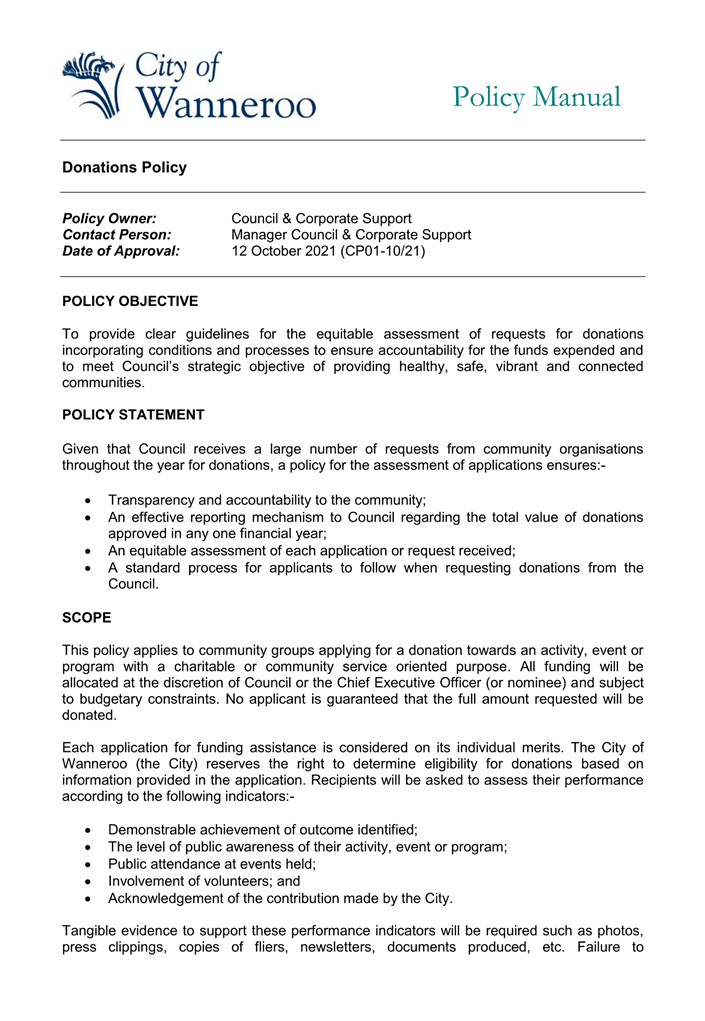 Following a request from the Mayor earlier in 2024, Administration spoke with the Quinns Rocks YES Cadets about possible funding support options for their group. At that time, Administration suggested that the Quinns Rocks YES cadets apply for funding support via the City’s Donations policy as this is the most relevant mechanism for this type of funding support. Through those discussions it became apparent that the group is not an incorporated association and it was uncertain whether they would be eligible for funding through the City’s Donations policy. The group indicated they would investigate becoming an incorporated association.