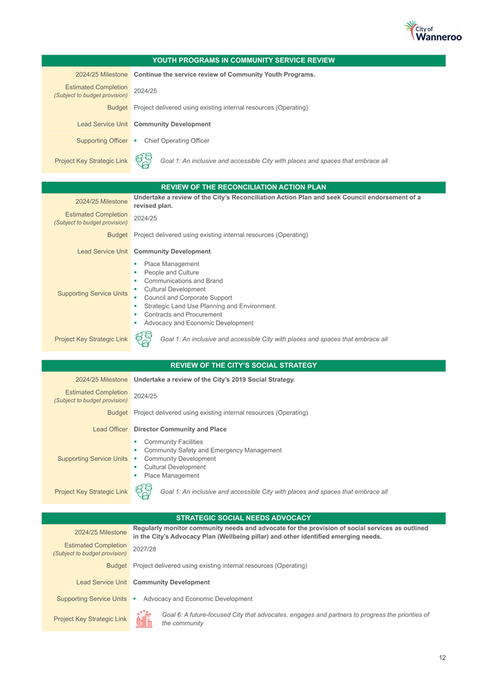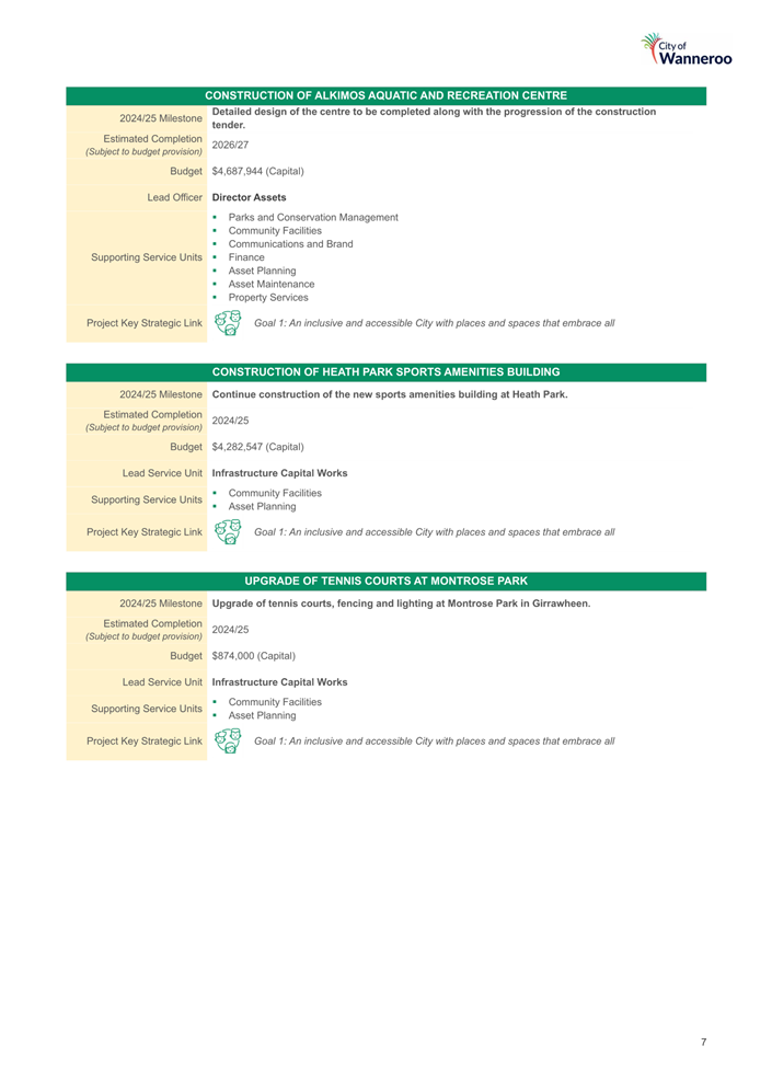 A similar working group in respect of the Wanneroo Recreation Centre Upgrade Project is in the process of establishment.
