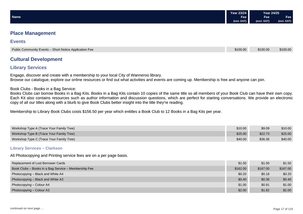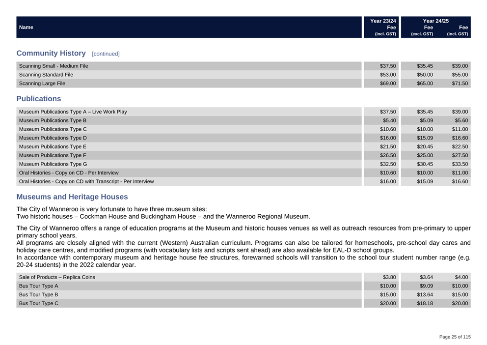 4. Members of the public may purchase a copy of the recorded proceedings or alternatively, listen to the recorded proceedings at the Civic Centre online if the recording is published on the City of Wanneroo website. Costs of providing a copy of the recorded proceedings to members of the public will include staff time to make the copy of the proceedings; as well as the cost of the digital copy for the recording to be placed on. The cost of staff time will be set in the City’s Schedule of Fees and Charges each financial year.