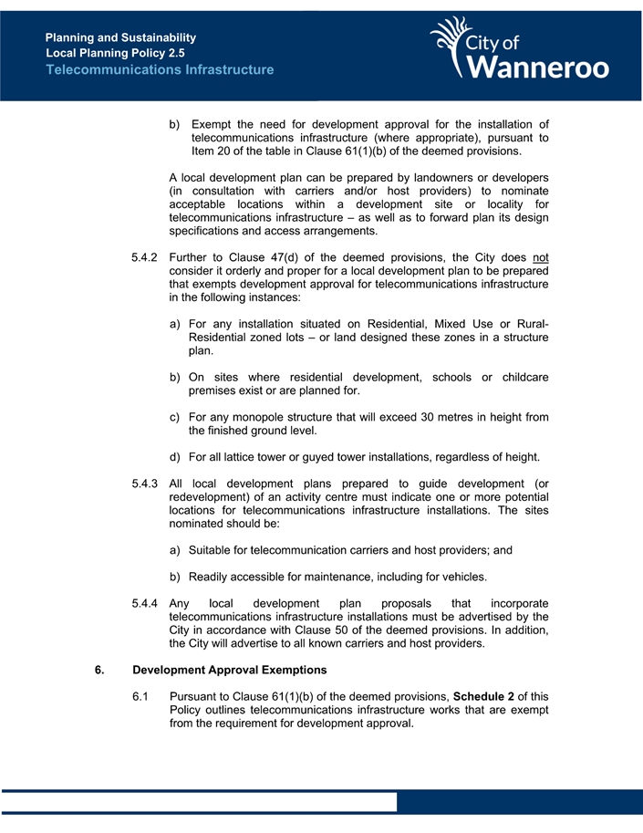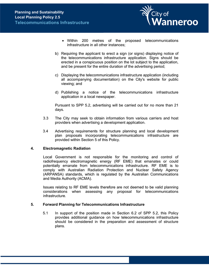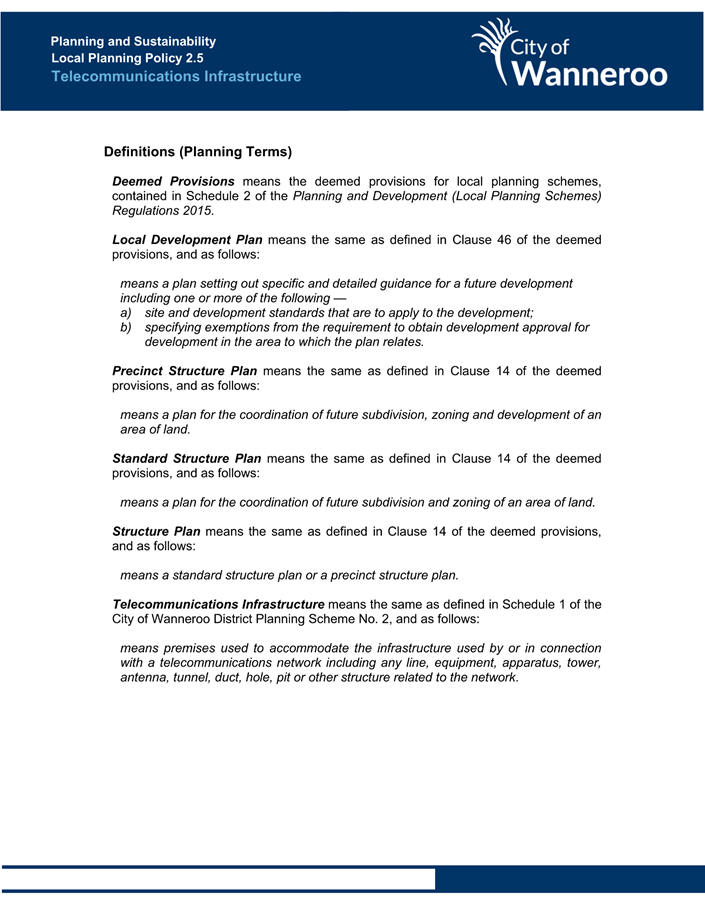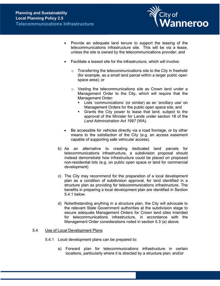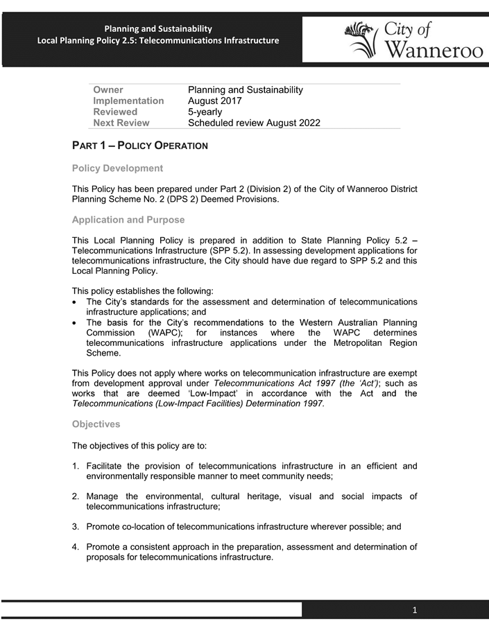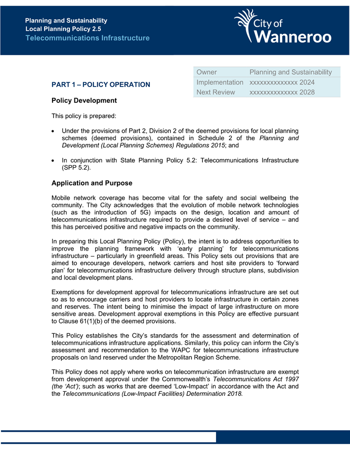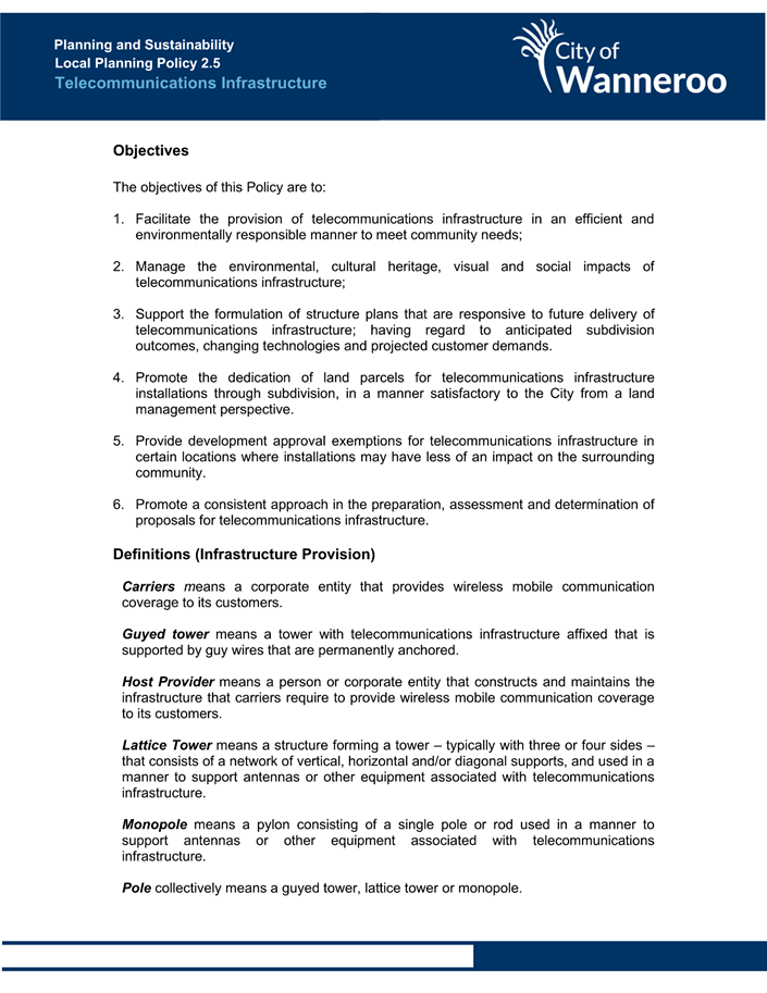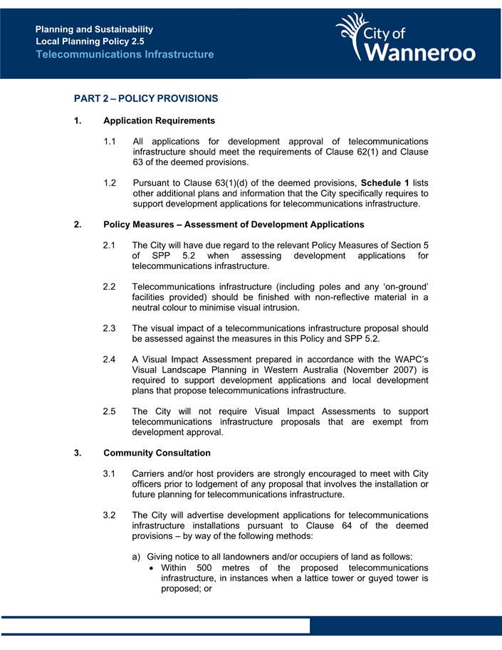 The Operational Guidelines and Model Policy are intended to provide an example for local governments undertaking their own policy-making (Attachment 4). The Operational Guidelines state:
