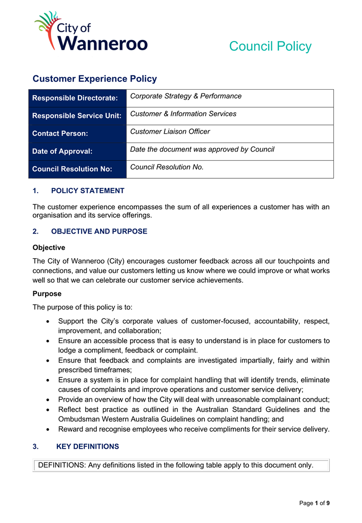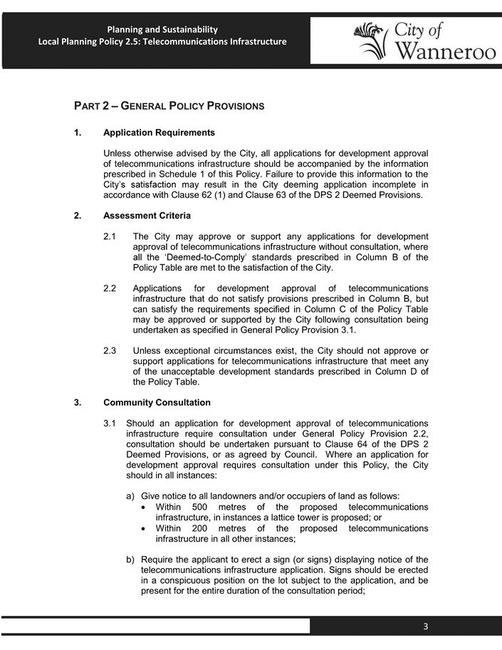 3. Alignment with the City’s current prescribed policy template.