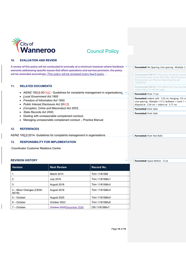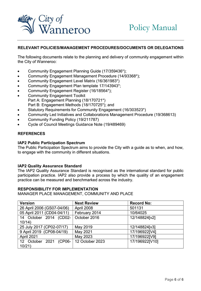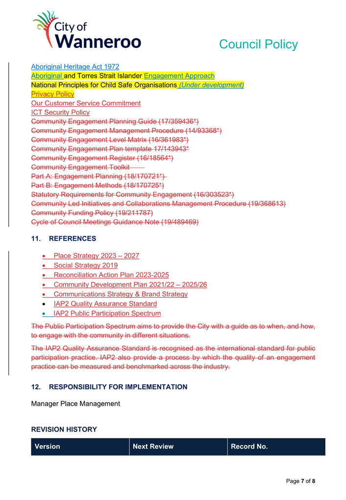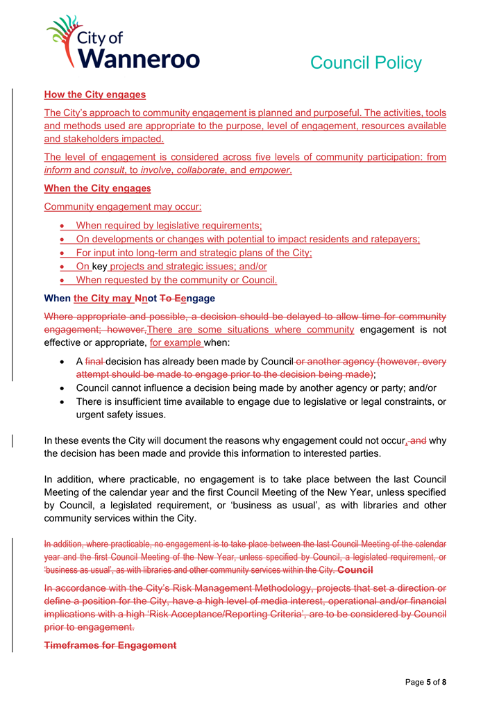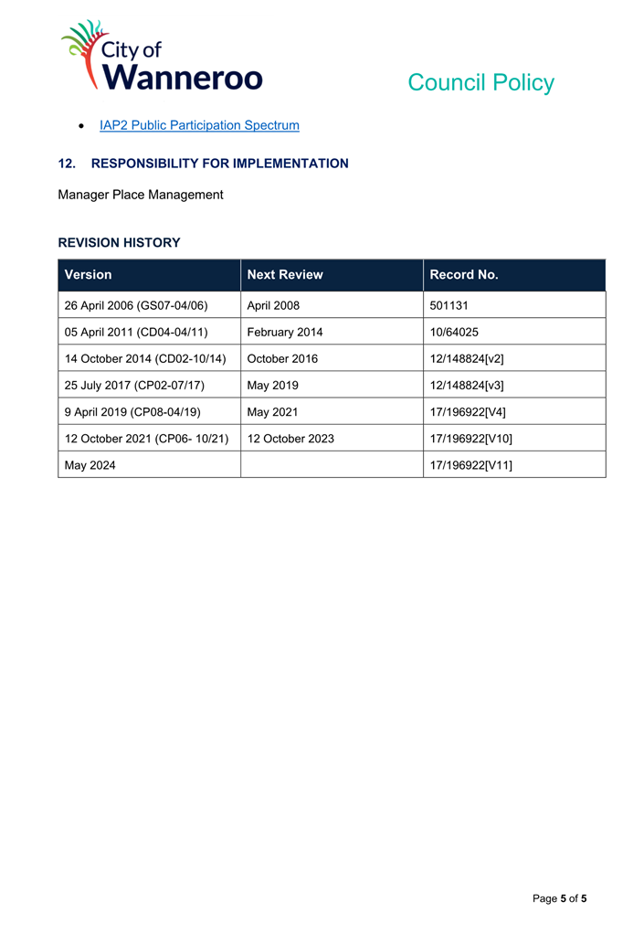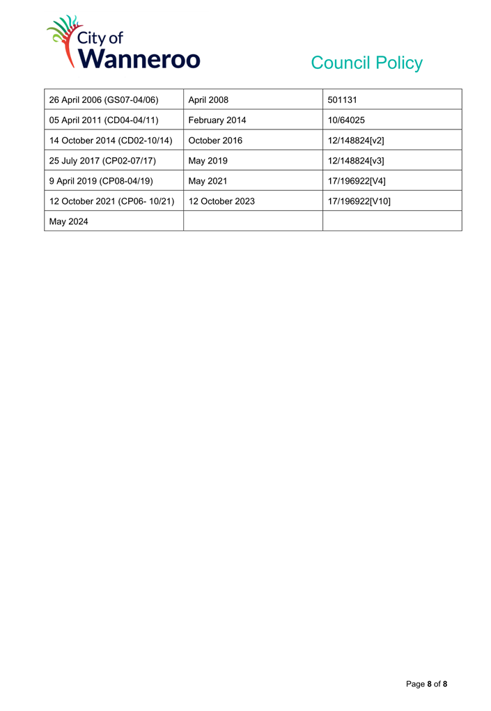 The 2014 Policy will be repealed and replaced by the 2024 Draft Policy (once finalised adopted by Council). Once adopted, the City will develop a Corporate Policy to apply to employees.
