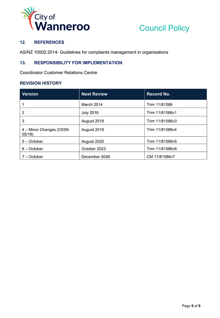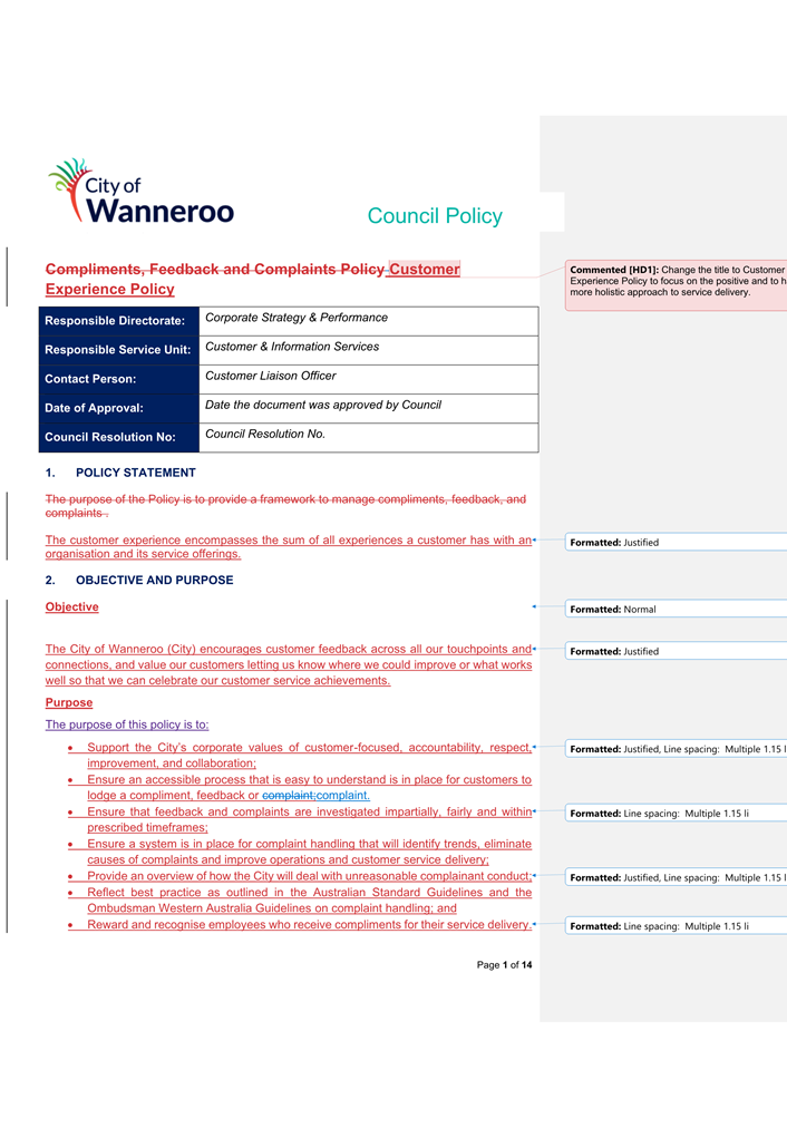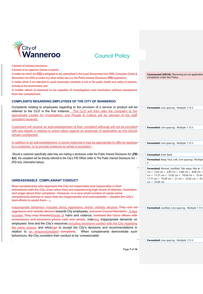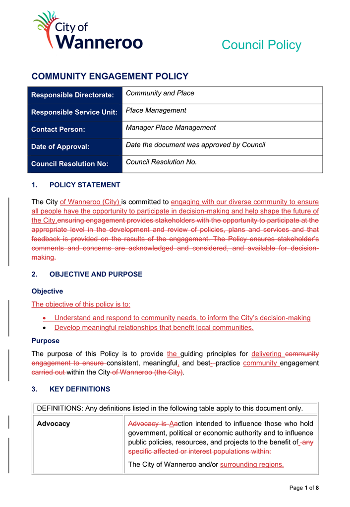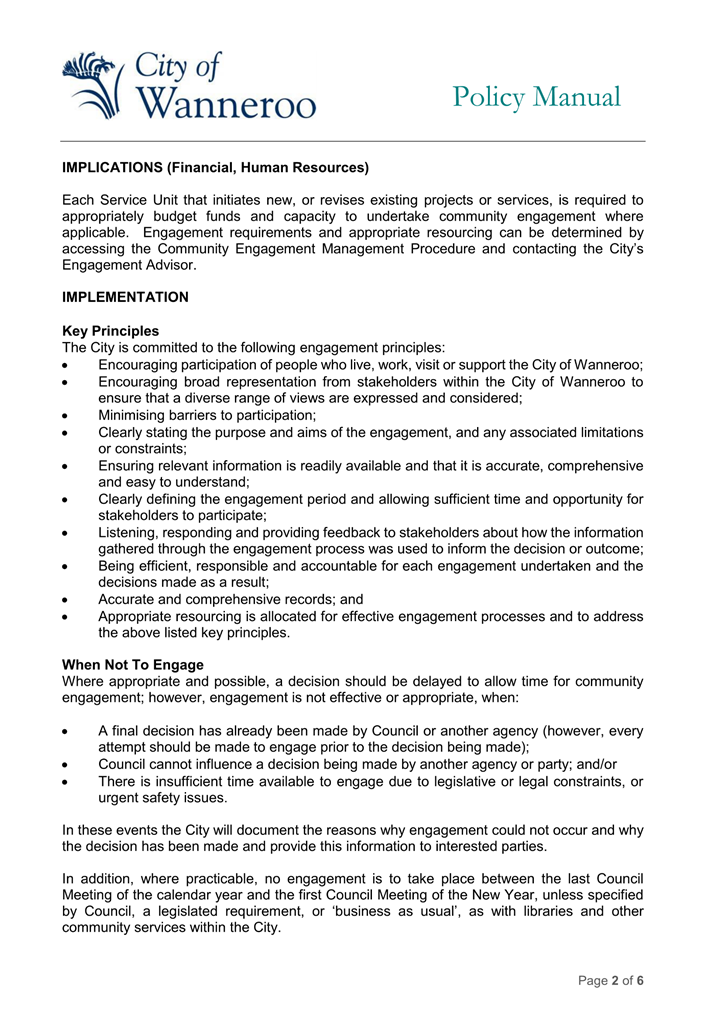 The 2014 Policy will be repealed and replaced by the 2024 Draft Policy (once finalised adopted by Council). Once adopted, the City will develop a Corporate Policy to apply to employees.