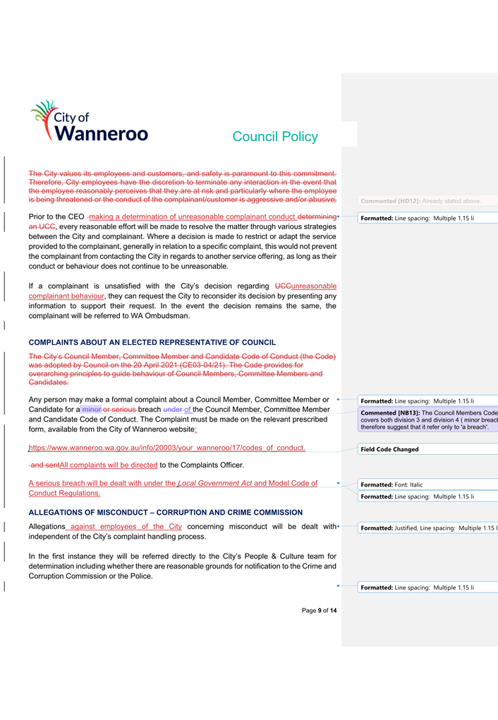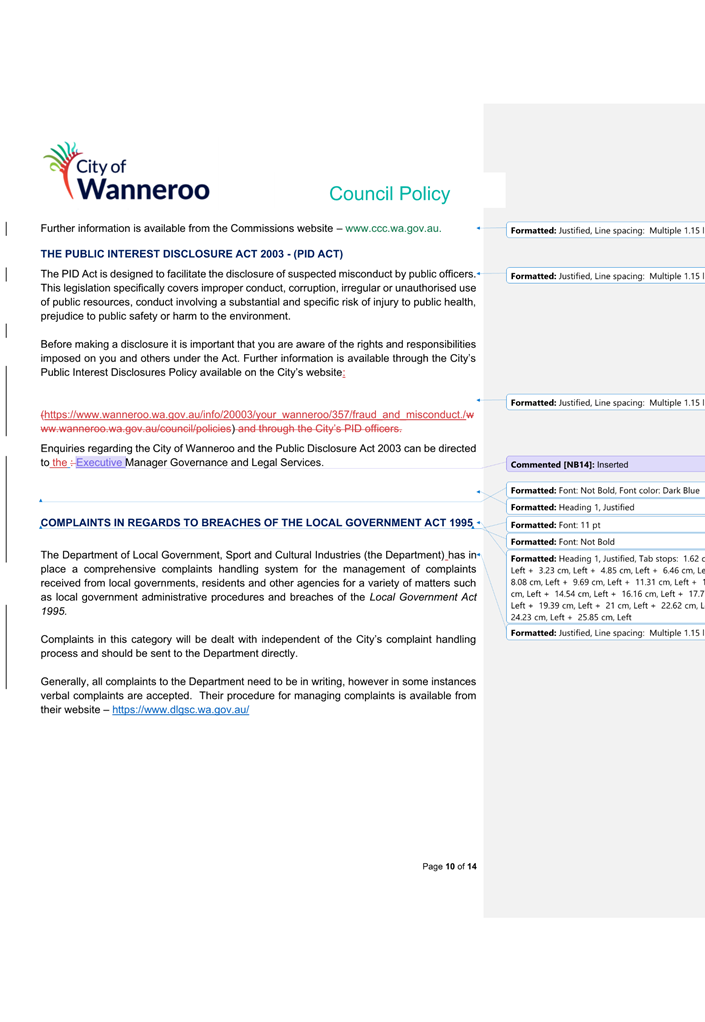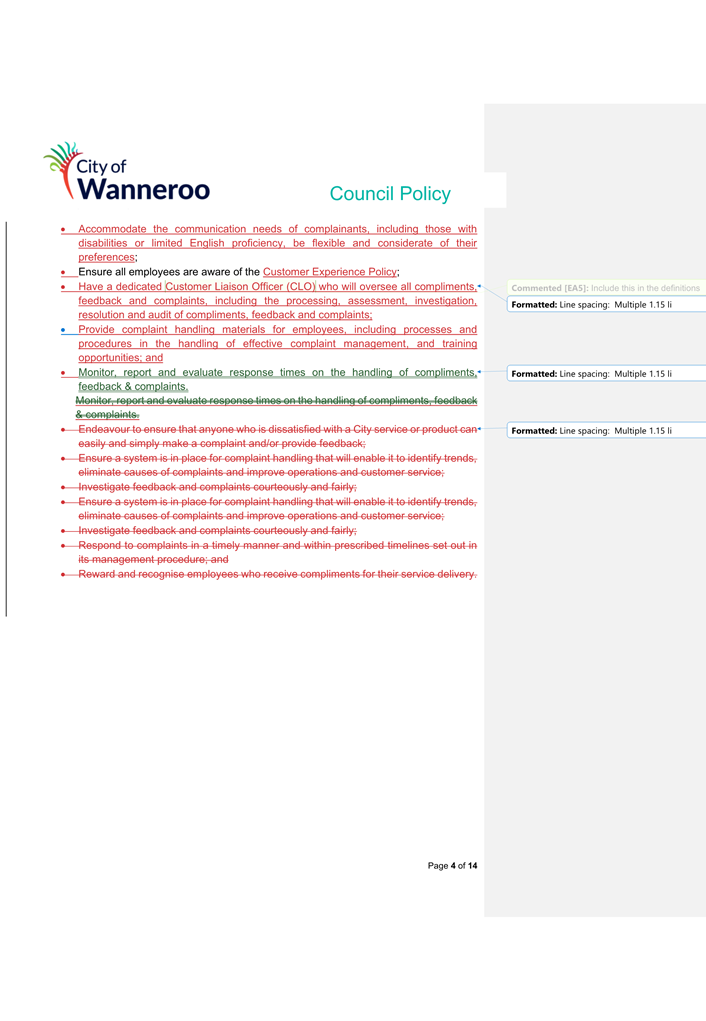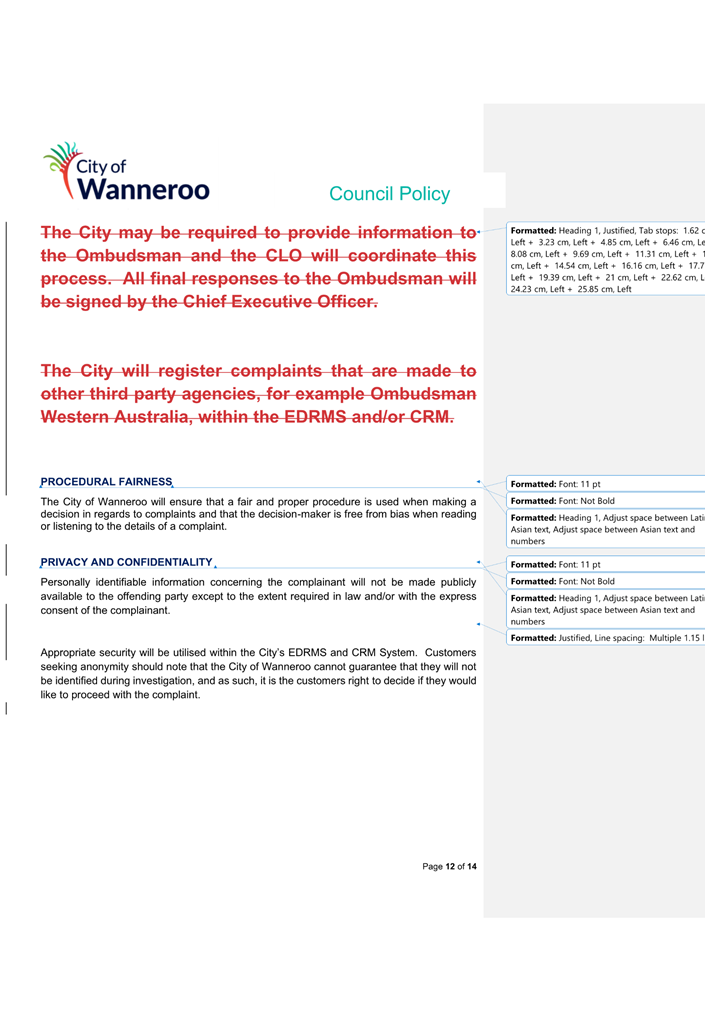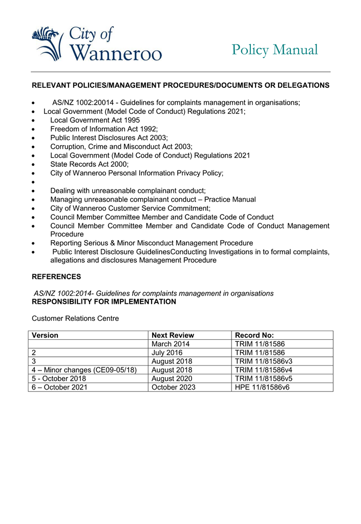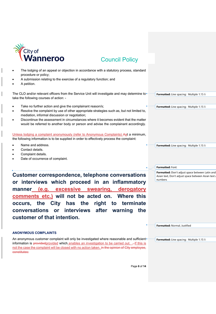 The 2014 Policy will be repealed and replaced by the 2024 Draft Policy (once finalised adopted by Council). Once adopted, the City will develop a Corporate Policy to apply to employees.