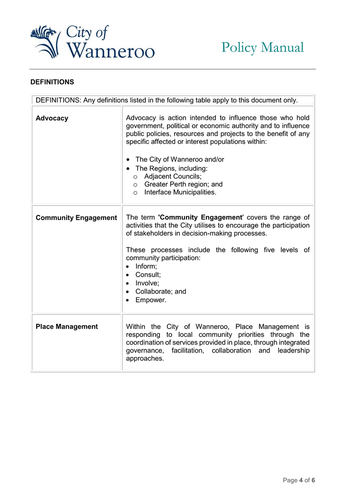 This Policy shall be printed within the Agenda of all Council Meetings which include: