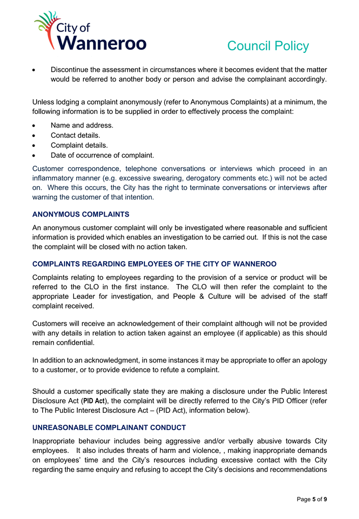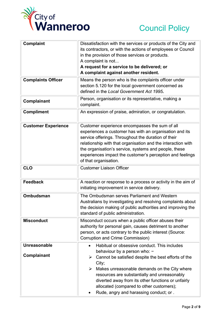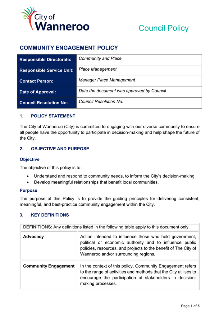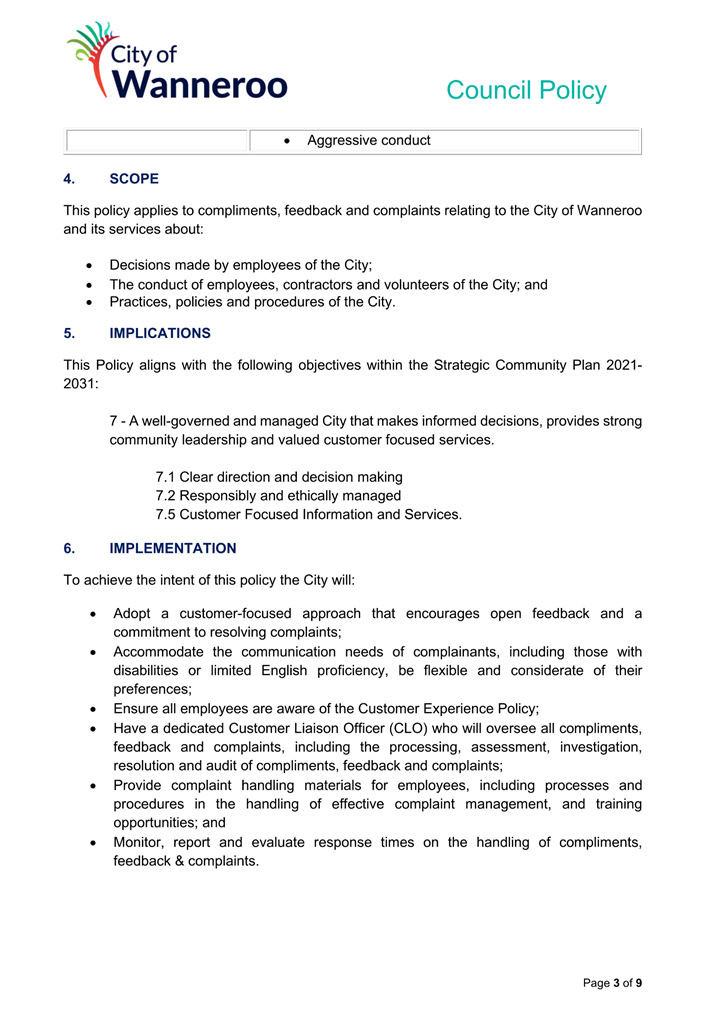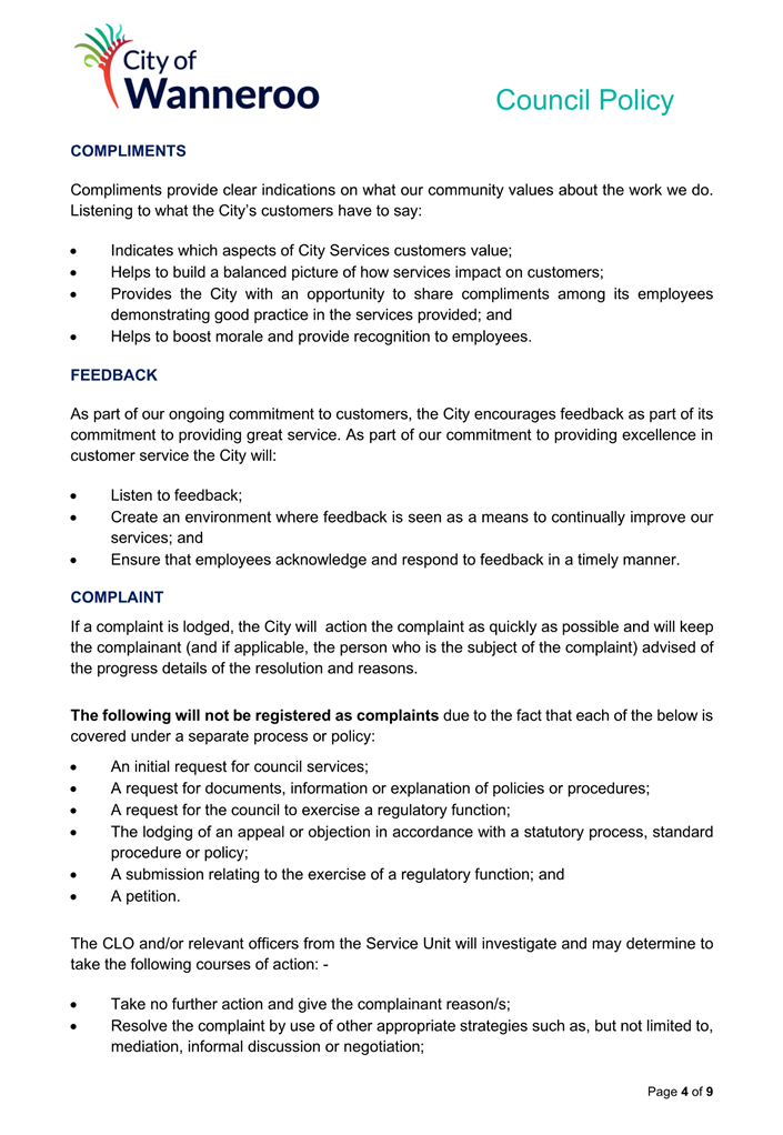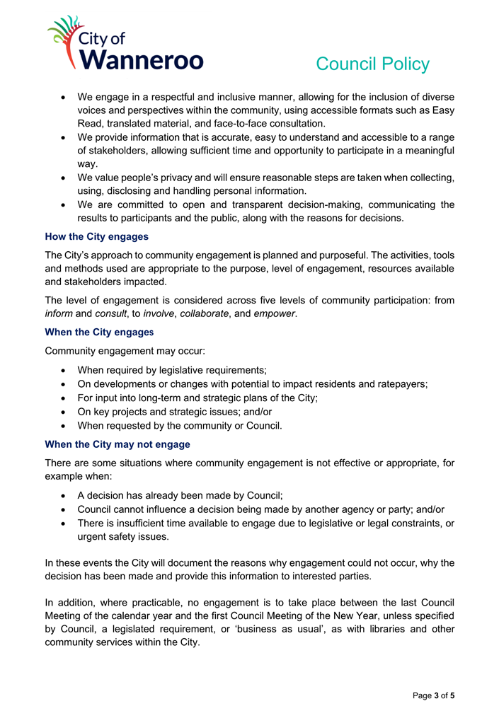 The City will make every endeavour to provide a response to any submissions at the meeting. All submissions will form part of the electronic meeting and will be recorded in the Minutes of the Council meeting.