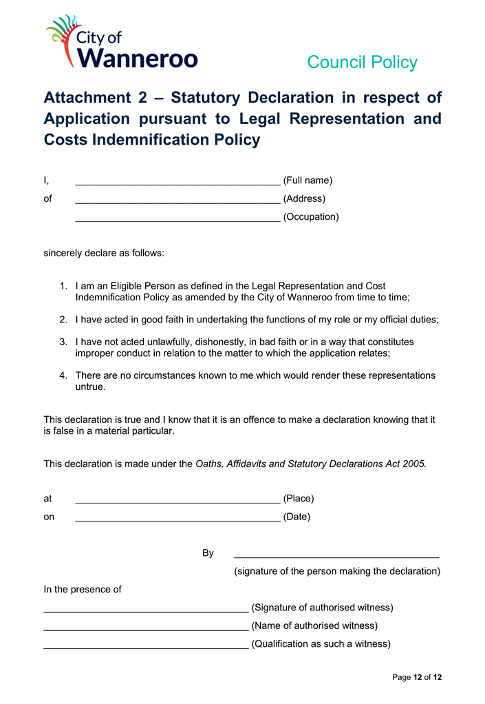 5. Attaches an Application Form and Statutory Declaration containing the prescribed information within the Policy, to assist Eligible Persons when they are making an application.
