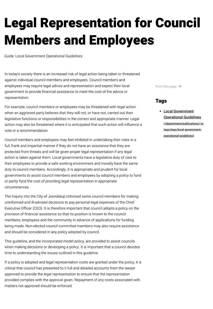 Attachment 4 - Department Operational Guidelines and Model Policy Legal Representation for Council Members and Employees |