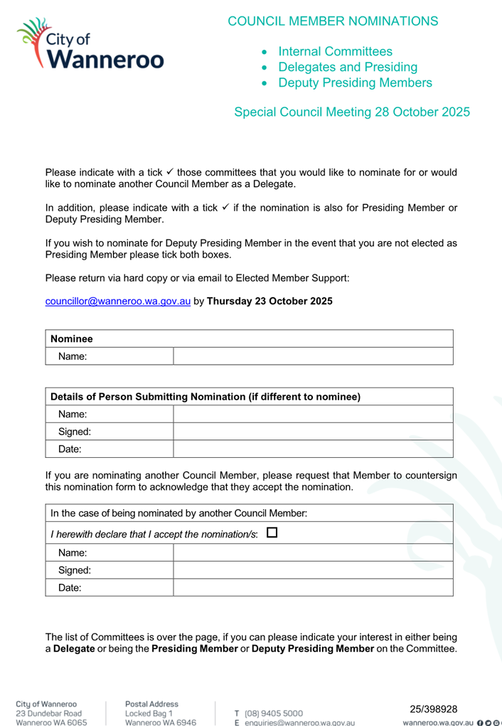 Attachment 1 - Nomination Form - Internal Committees |