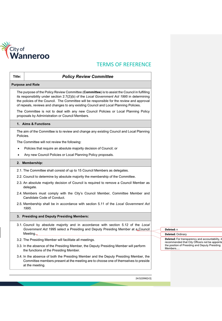 Attachment 3 - Terms of Reference - Policy Review Committee - Marked Up |