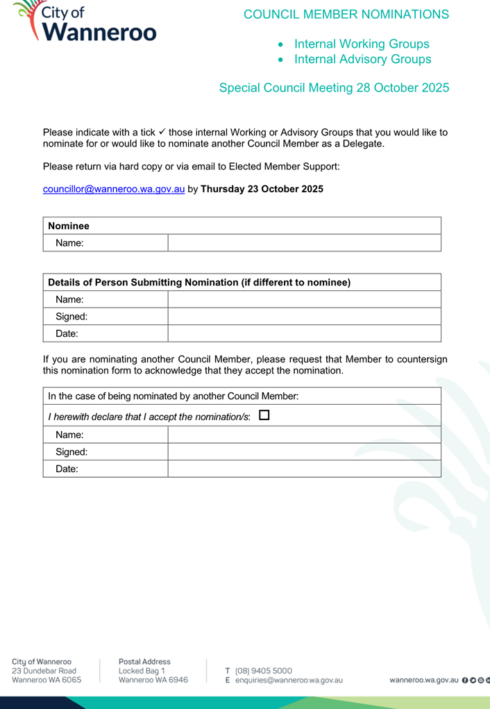 Attachment 1 - Nomination Form - Internal Working and Advisory Groups |